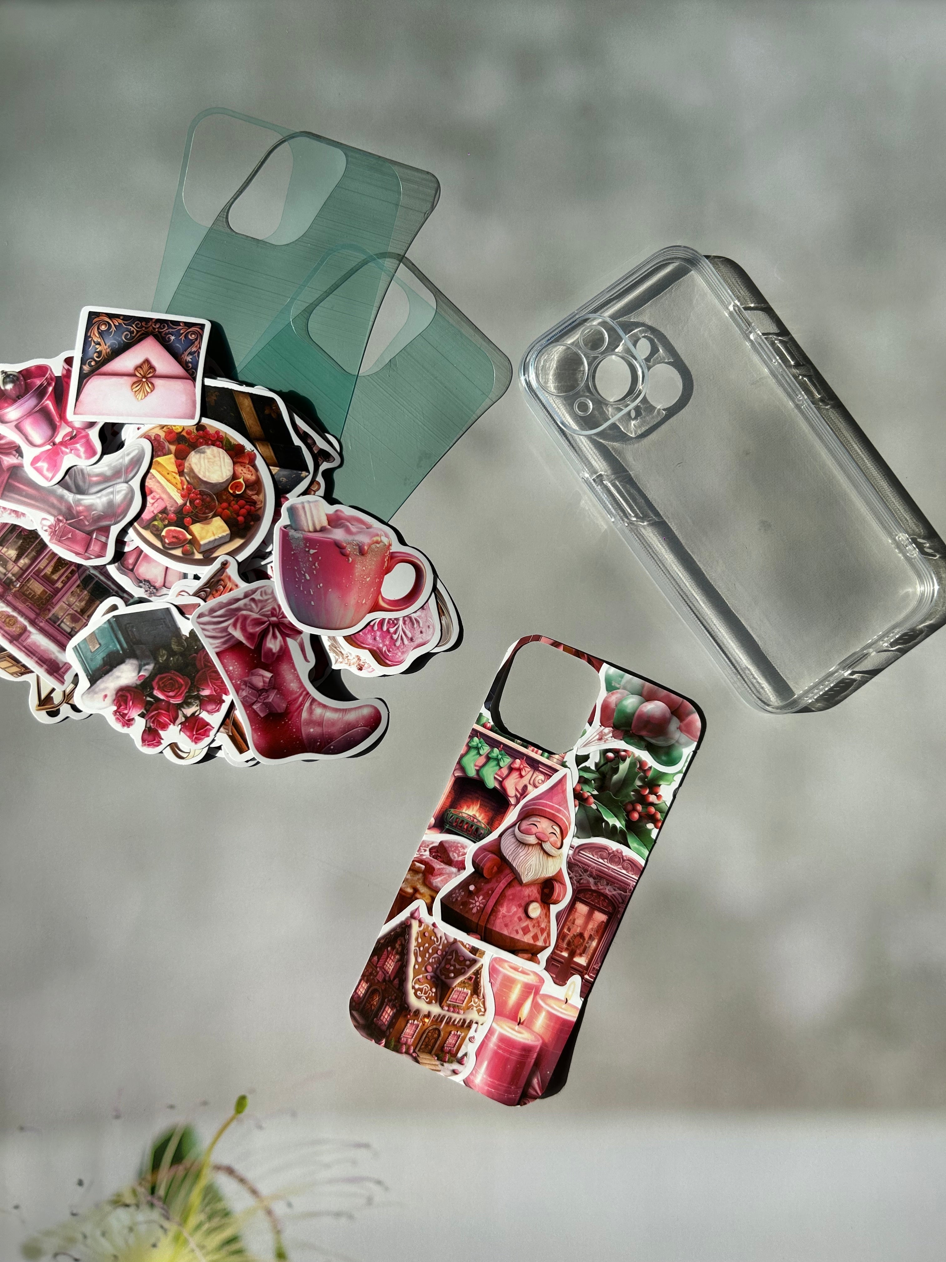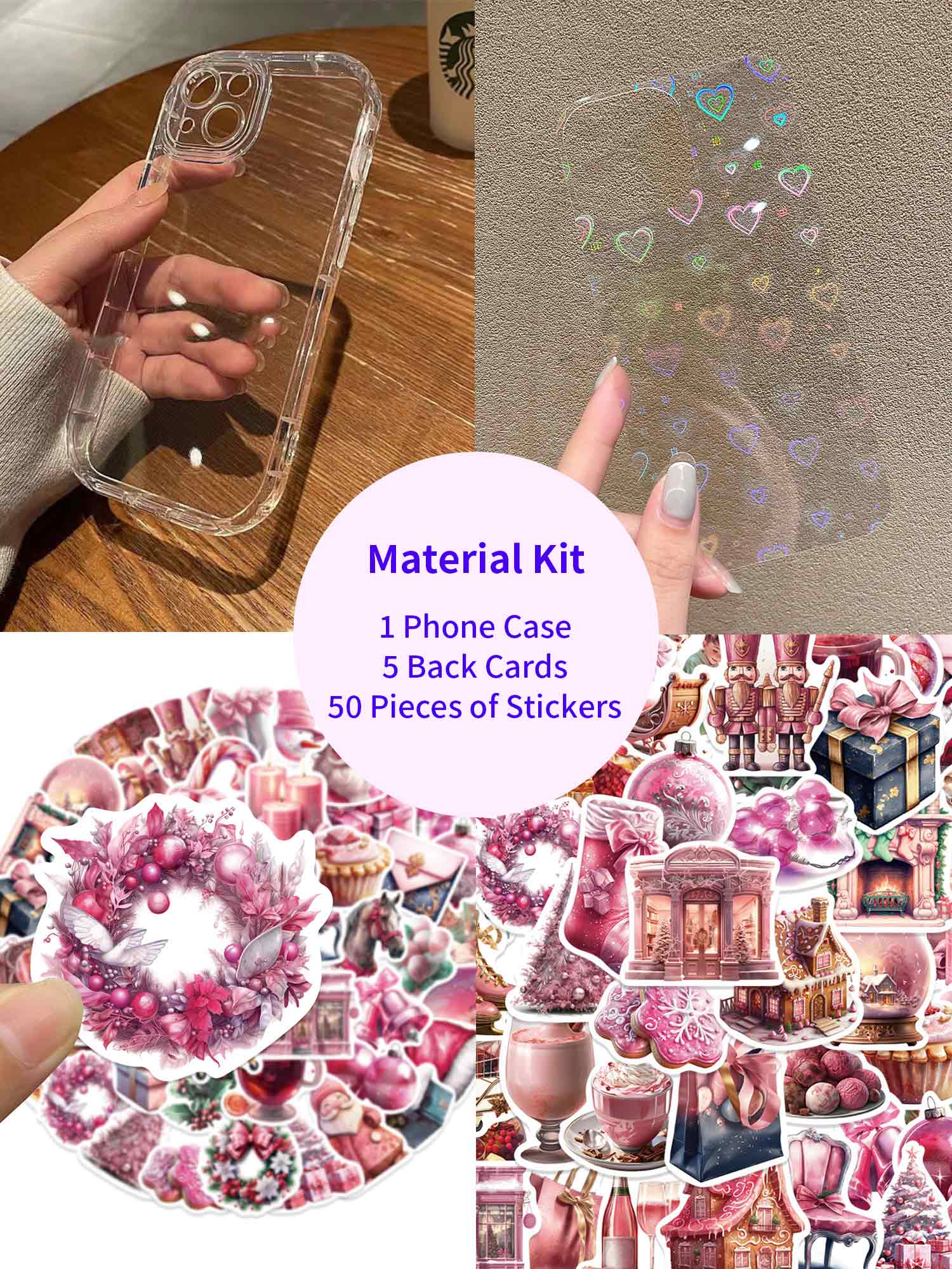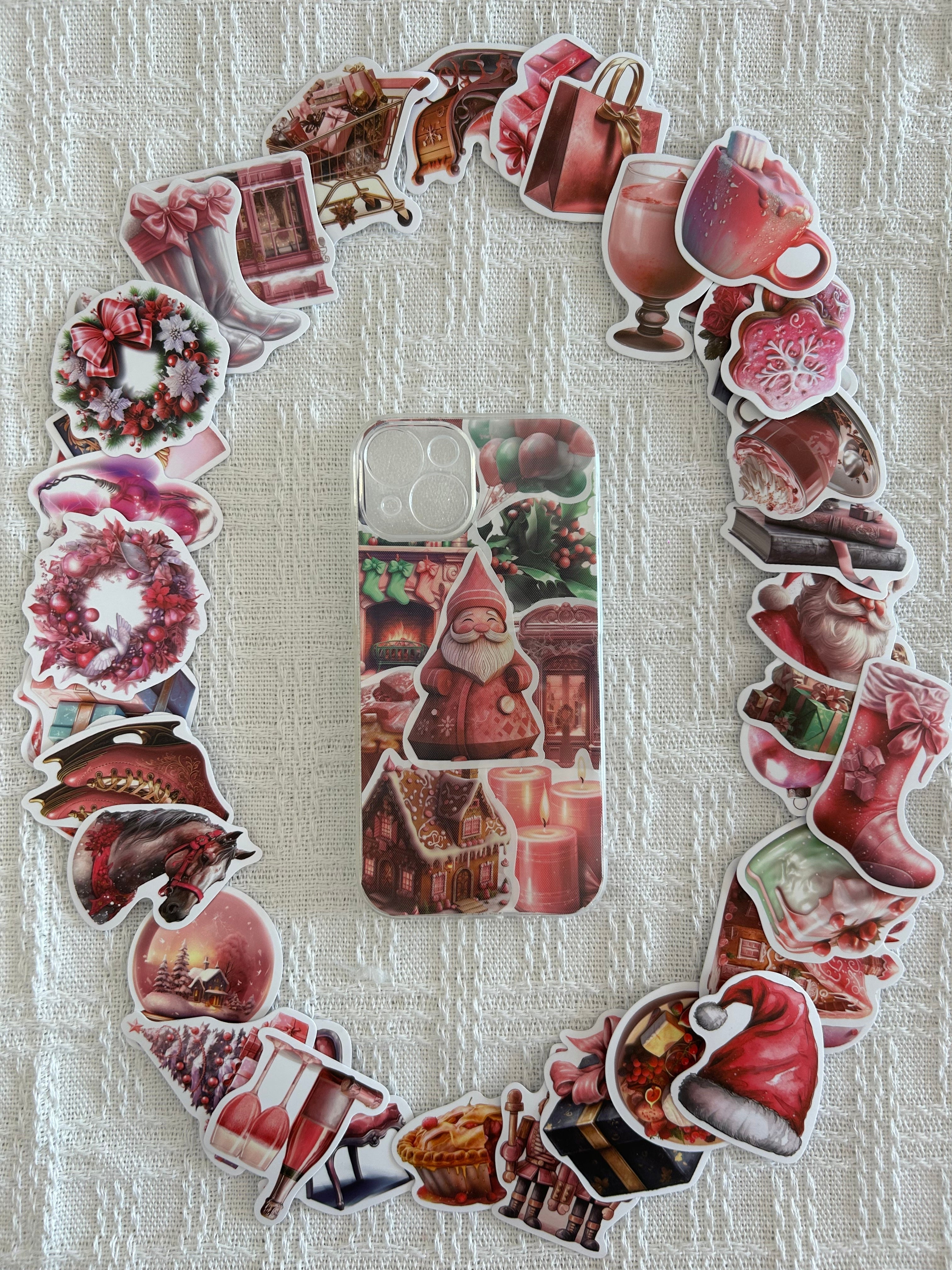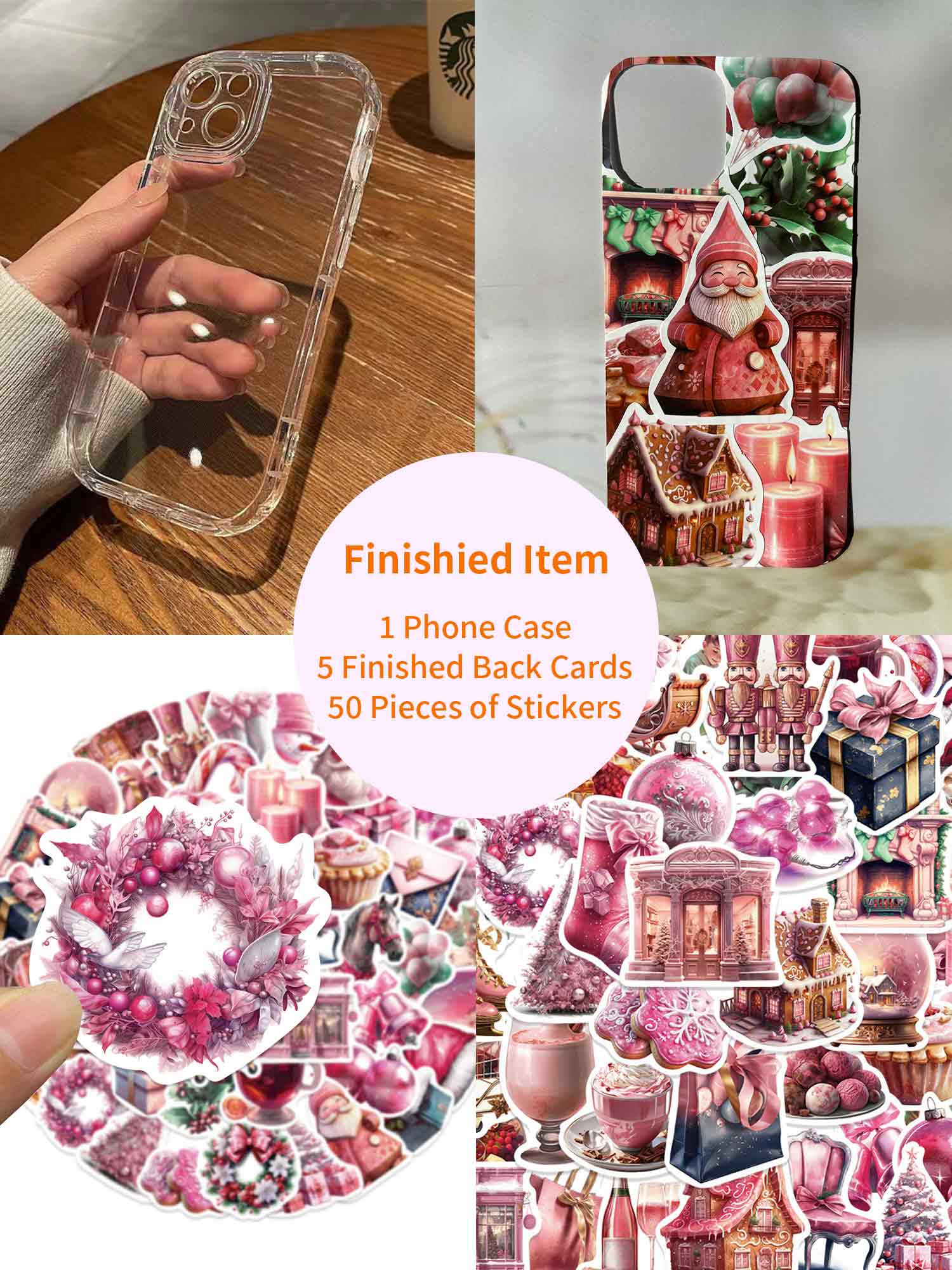 Pink Christmas Decor Sticker DIY Phone Case | ZAKAPOP ‐ Finished Product (1 Phone Case + 5 Finished Back Cards + 50 Pieces Of Stickers) / Other iPhone Type