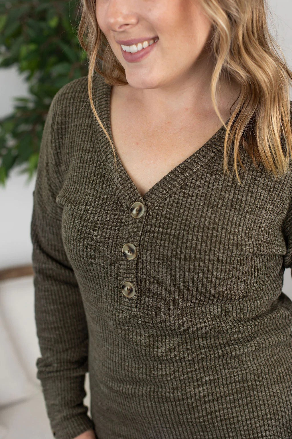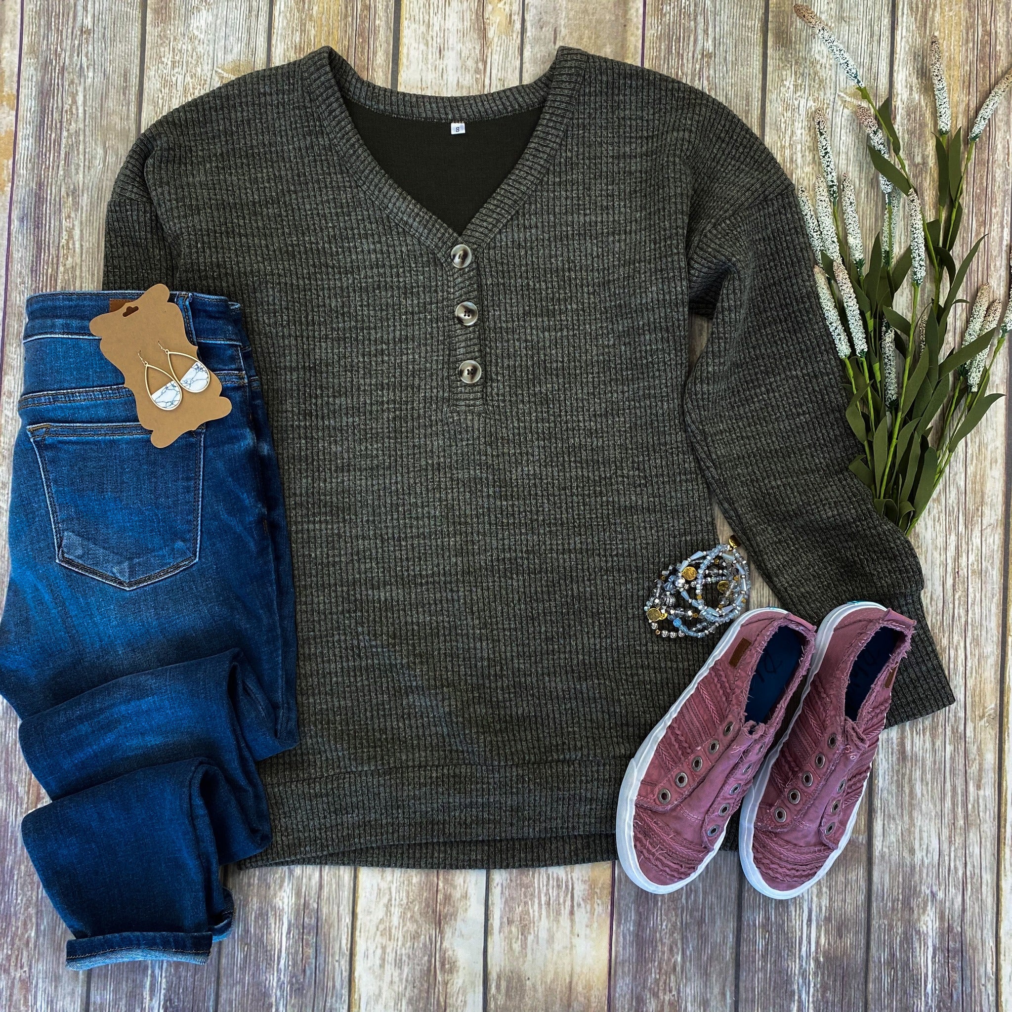 Brittney is your new bestie! These sweaters are soft as a cloud, have functioning buttons at the neckline, with coordinating functioning buttons at the cuff as well. These run true to size (slightly oversized by design) and have good stretch. We love the fit, fabric, texture, and overall feel of these sweaters!