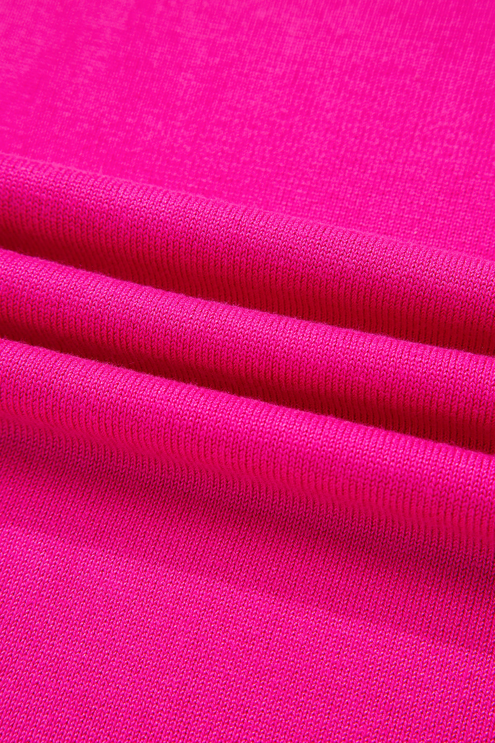 Contrast Trim Crewneck Short Sleeve Sweater ‐ Rose Red / M