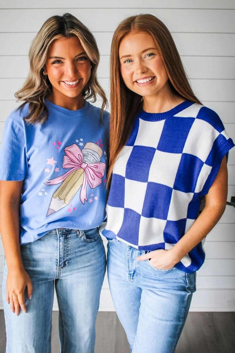 Dark Blue Cherckerboard Round Neck Sweater Vest