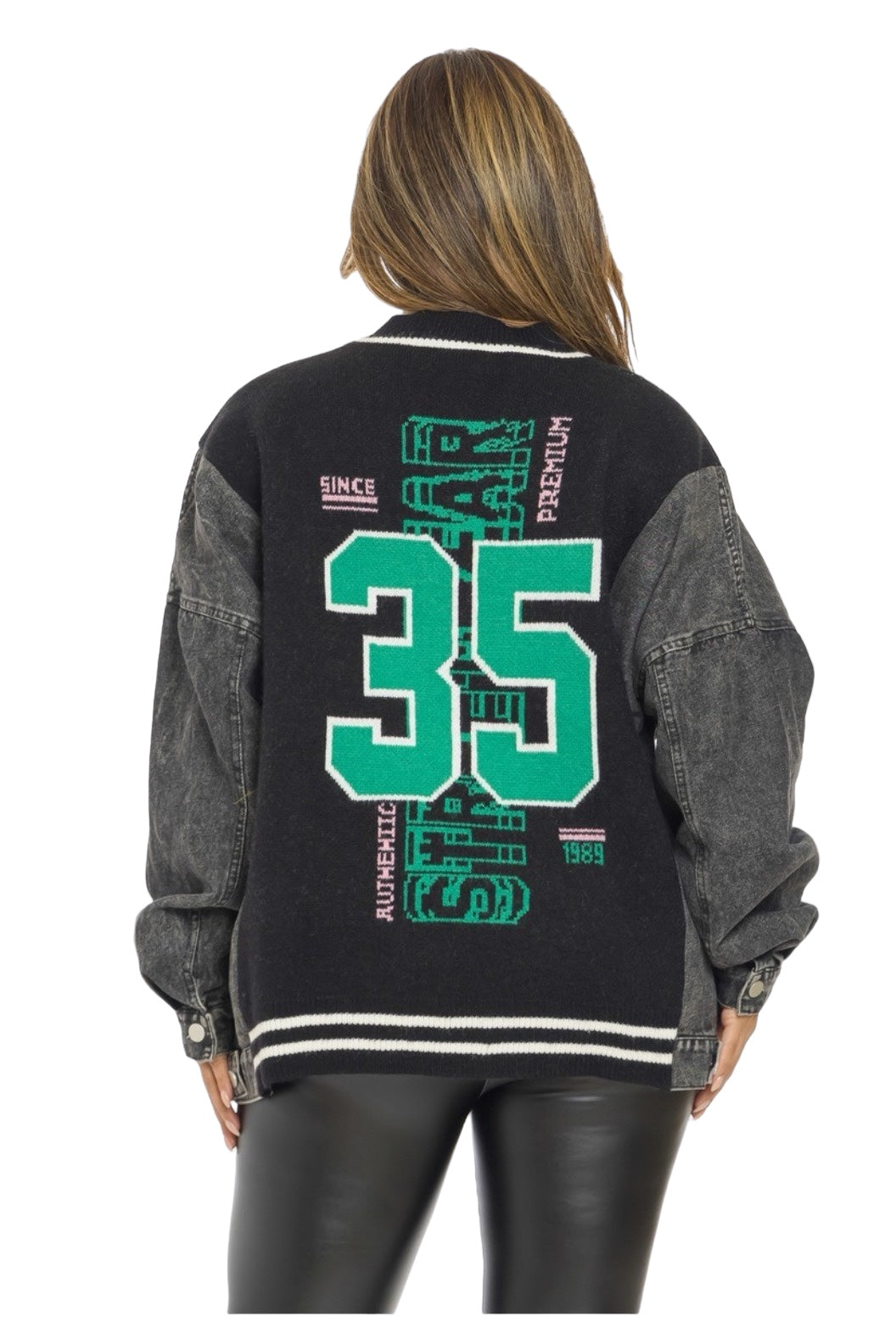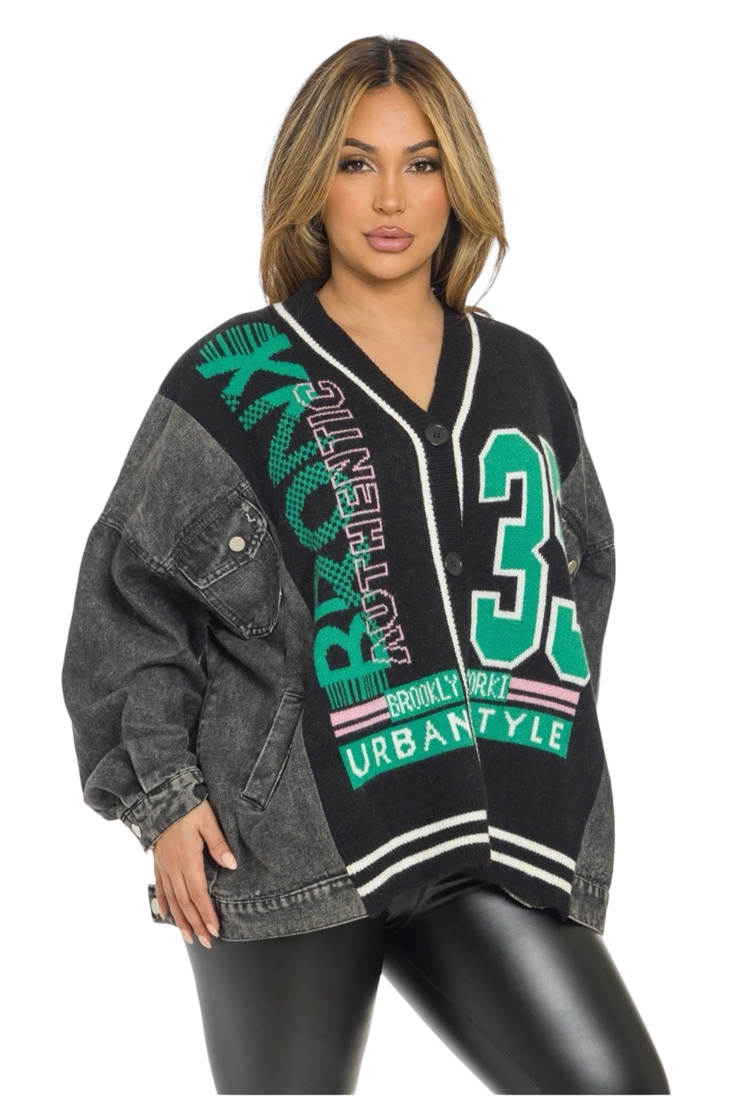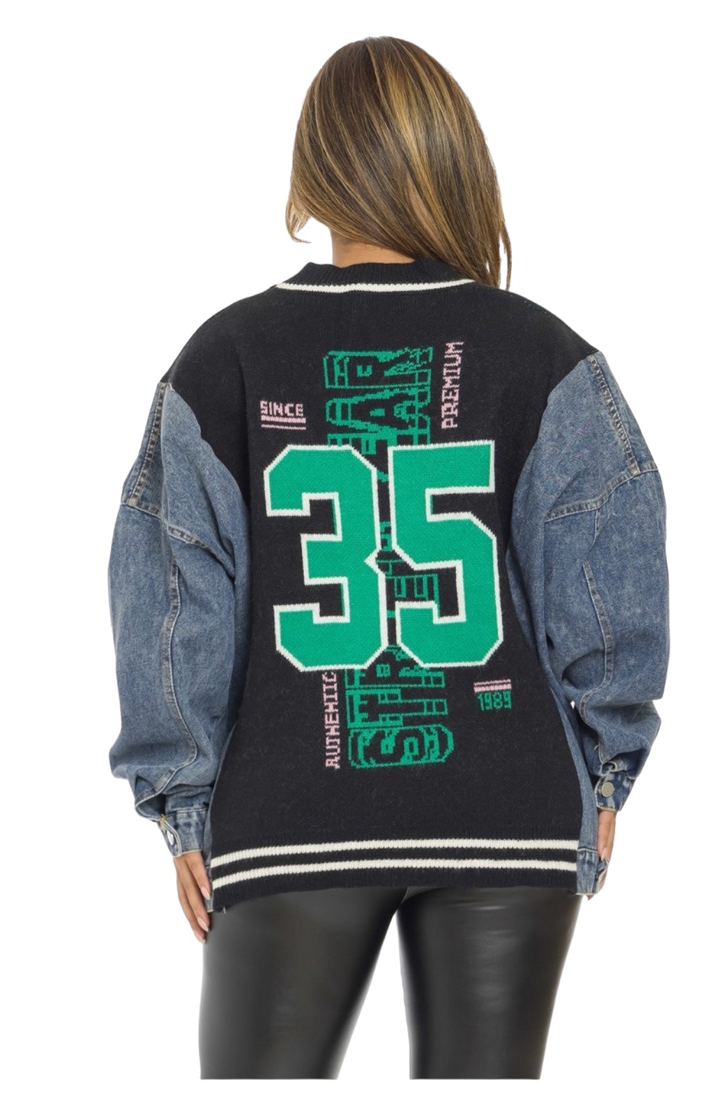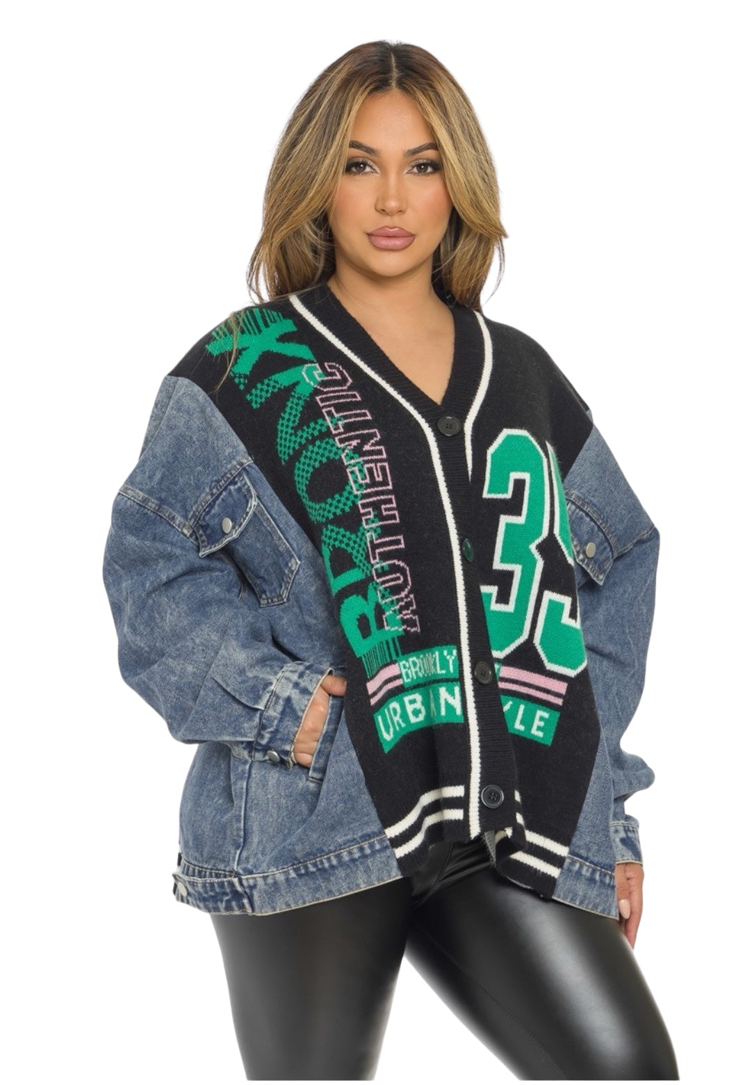 Denim & Sweater Cardigan ‐ Black / ONE SIZE FITS MOST
