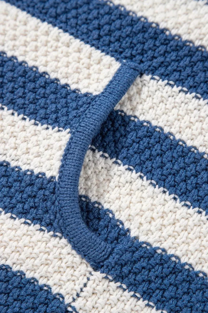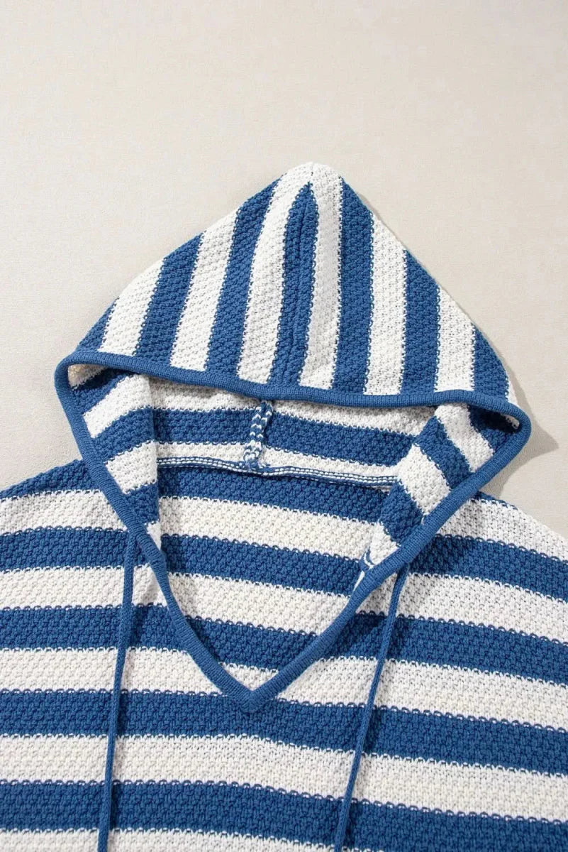 Drawstring Striped Long Sleeve Hooded Sweater ‐ Peacock Blue / S