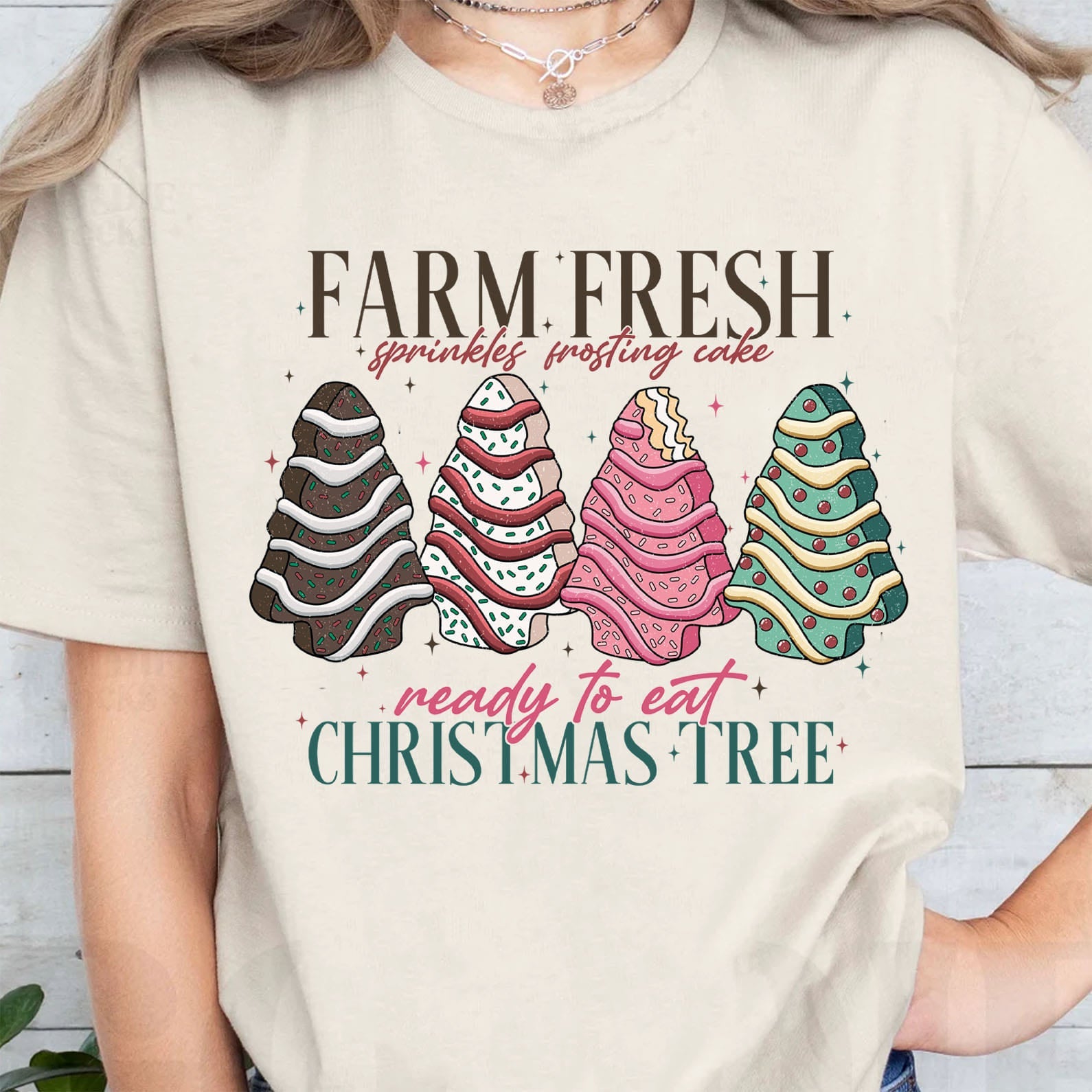 Farm Fresh Christmas Tree Shirt, Merry Christmas Sweater, Cute Xmas Holiday Sweatshirt T1655 ‐ Basic Tee / Sand / 4XL