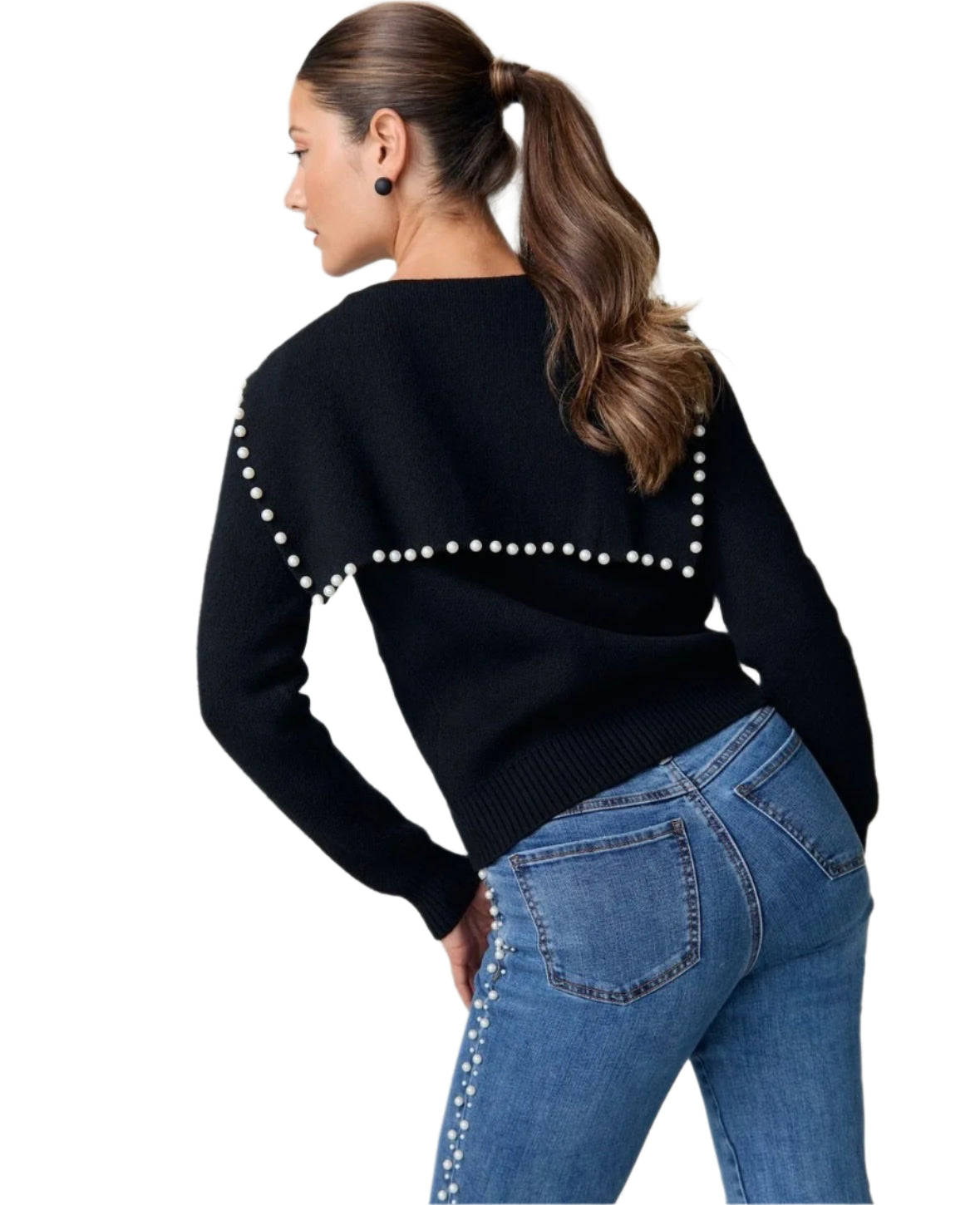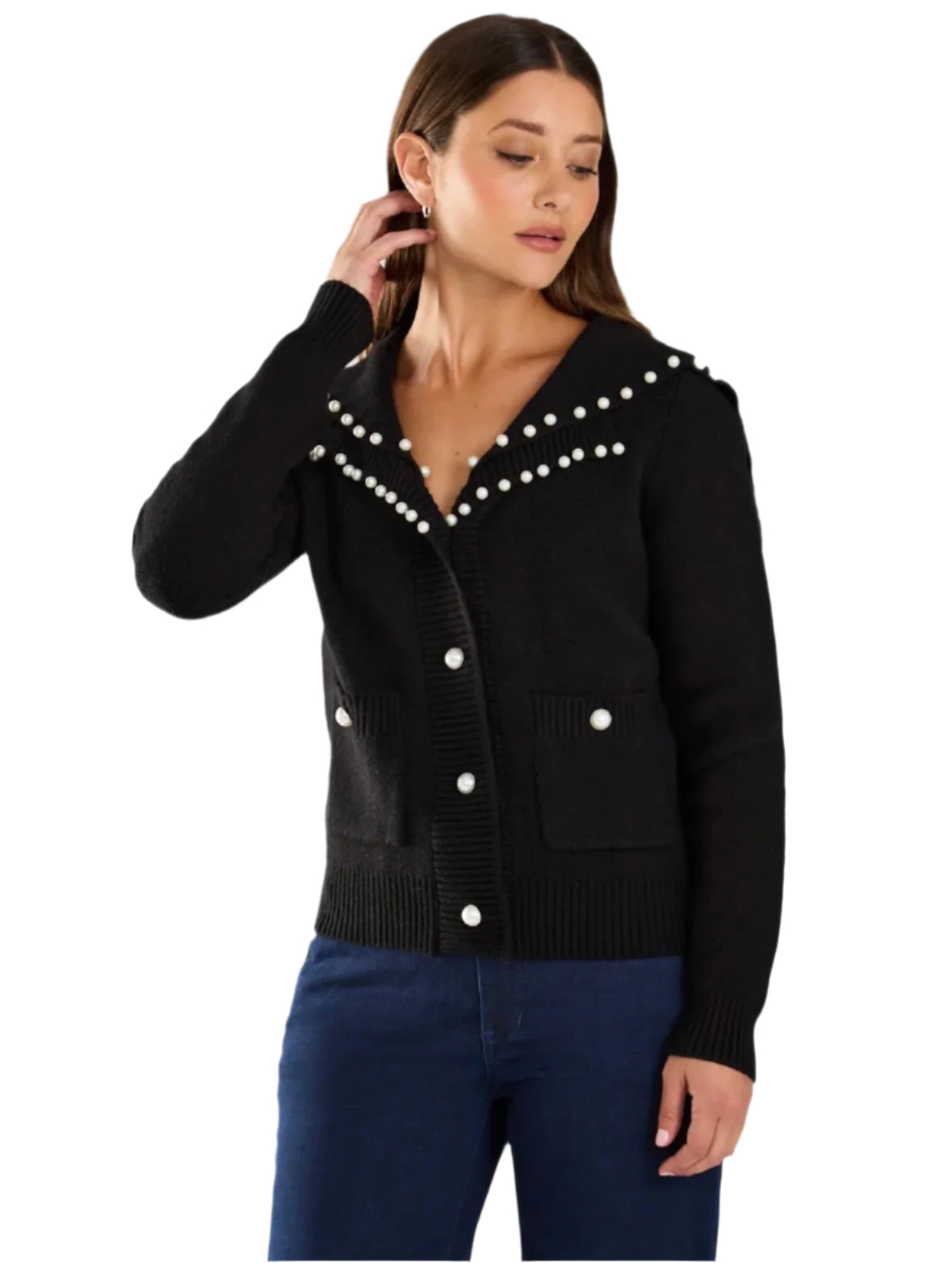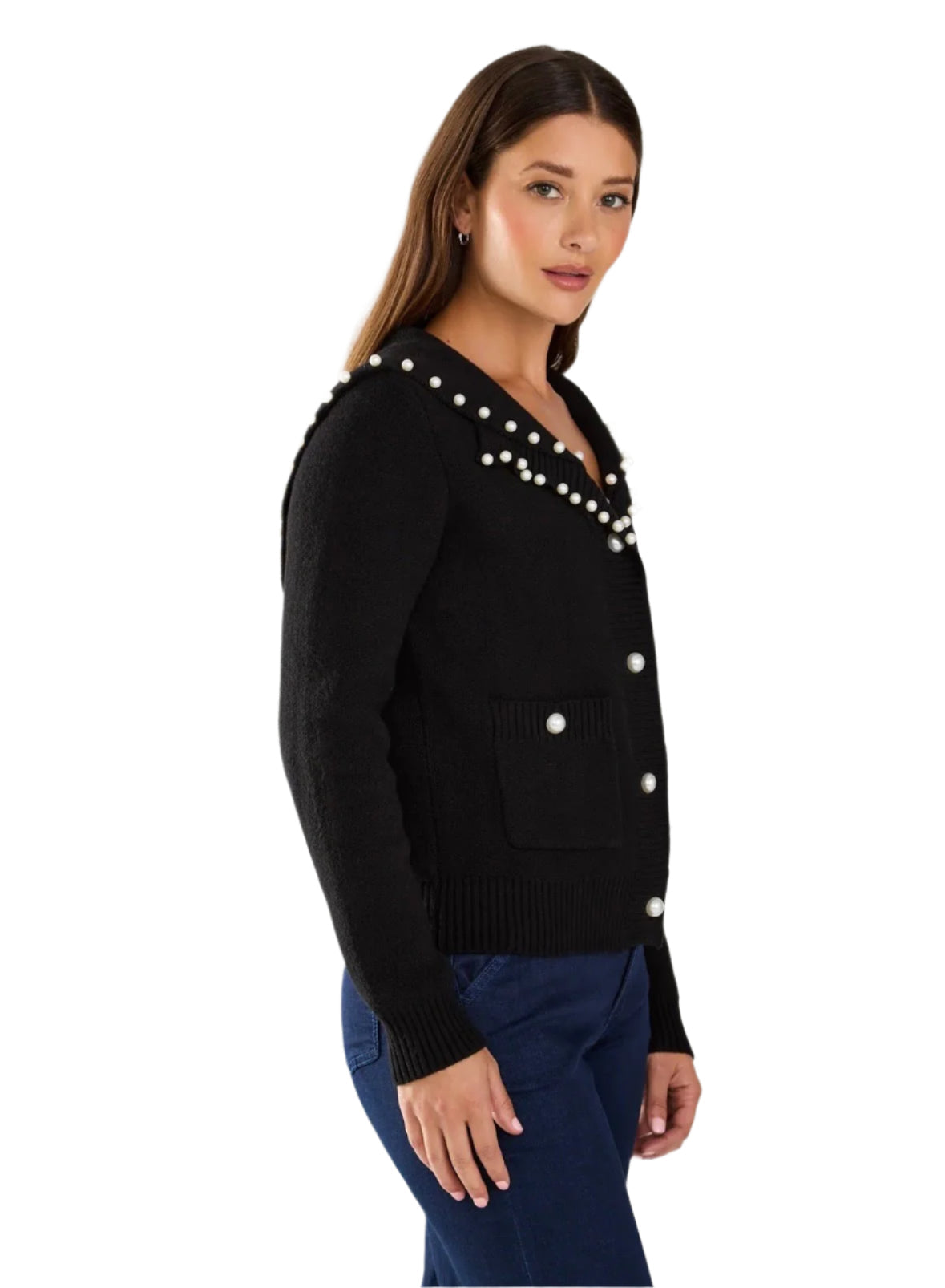 Add a touch of elegance to your everyday look with the FDJ pearl embellished cardigan sweater. The delicate pearl design elevates this classic cardigan making it a fun and versatile staple in your wardrobe. Stay stylish and playful with this must-have piece!