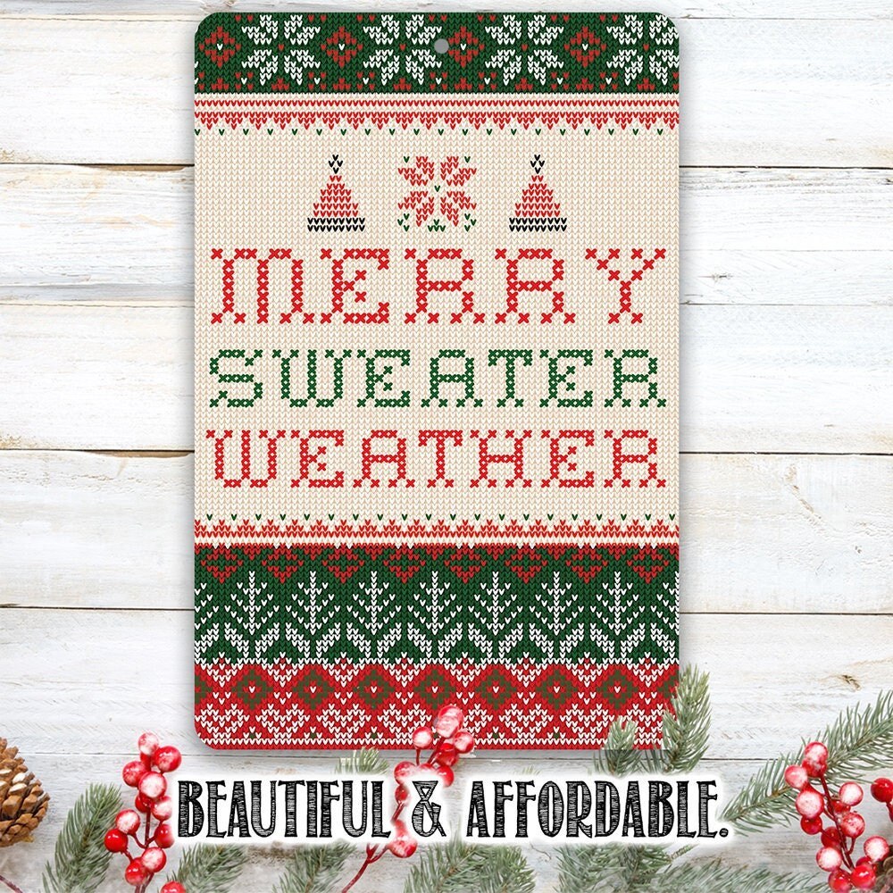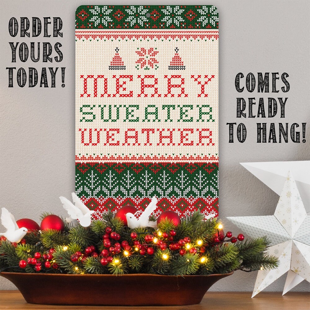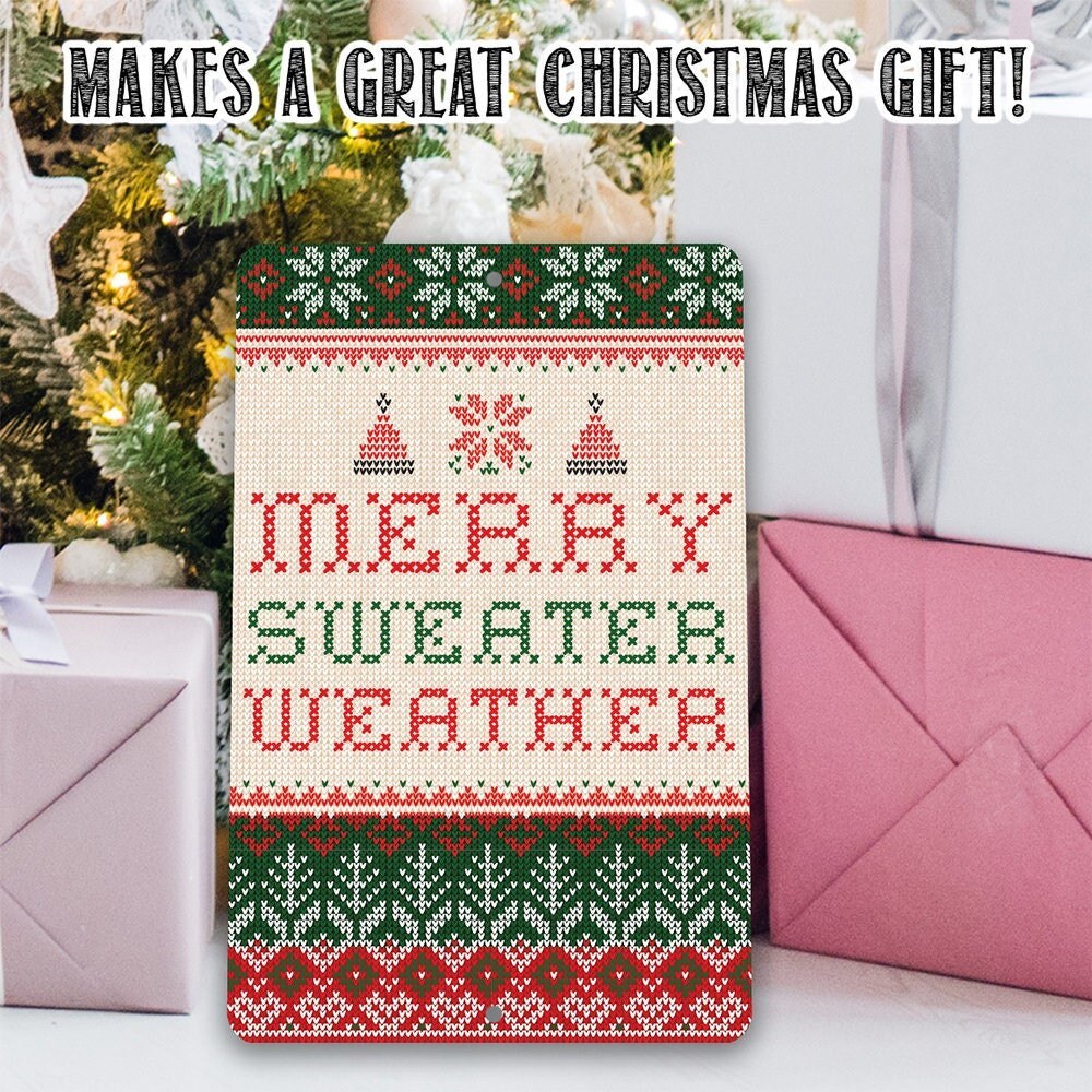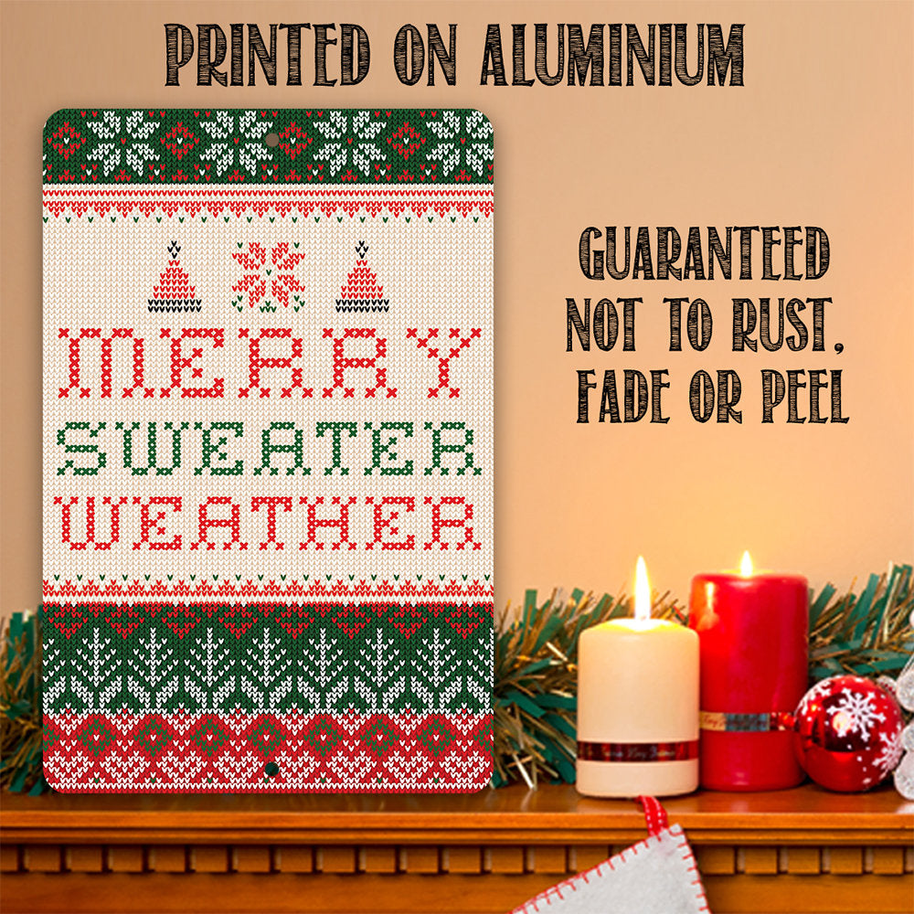 Christmas Home Decor - Merry Sweater Weather - 8" x 12" or 12" x 18" Aluminum Tin Awesome Metal Poster