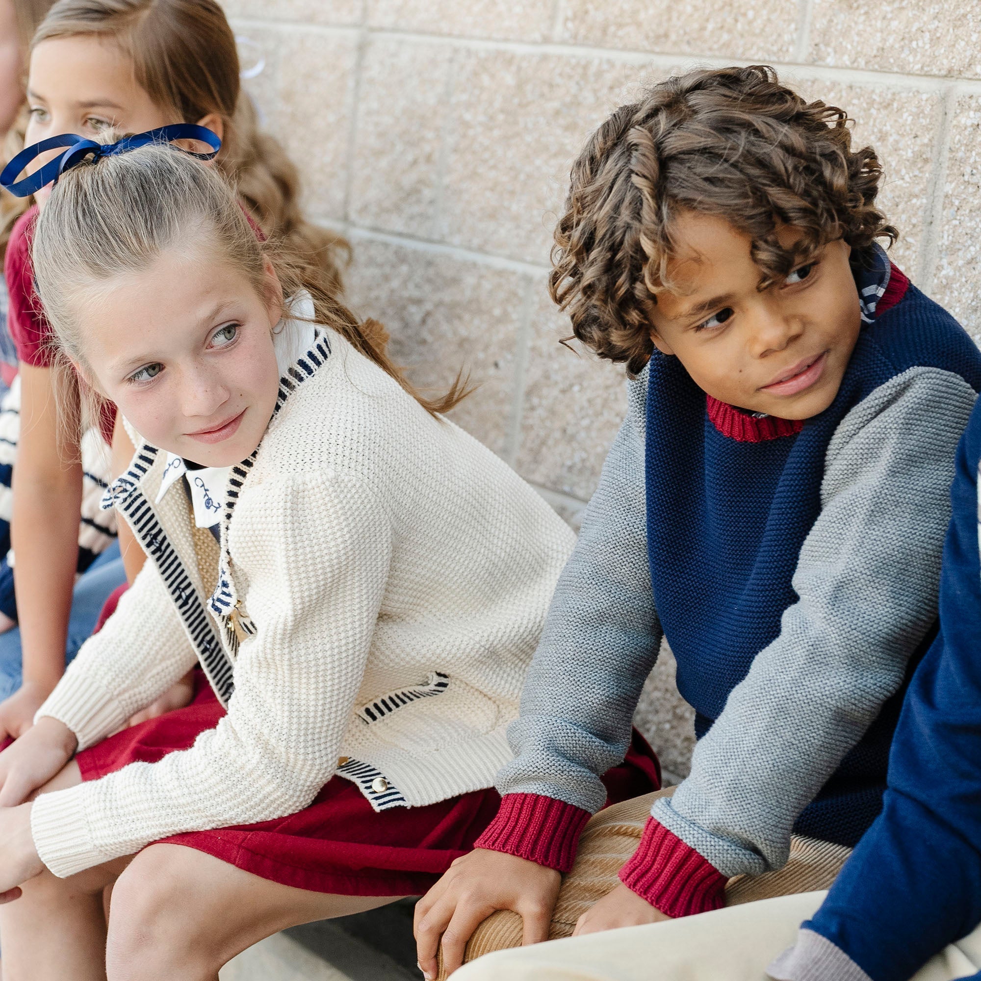 Our cozy crew neck sweater is crafted from soft organic cotton and will keep your boy warm all season long. Features textured colors in an easy pullover silhouette with rib trim. Layers beautifully with our collection of organic cotton button down shirts - it's a sweater he'll love for years to come.