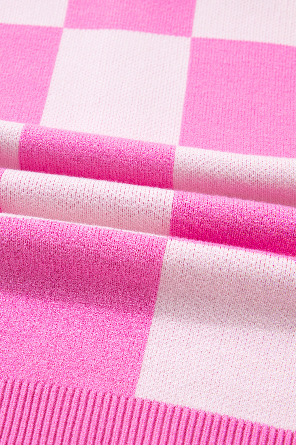 Plus Size Checker Collared Half-Button Henley Sweater ‐ Pink / 2X