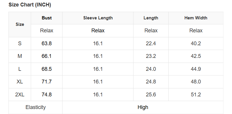 See size chart for approximate measurements.