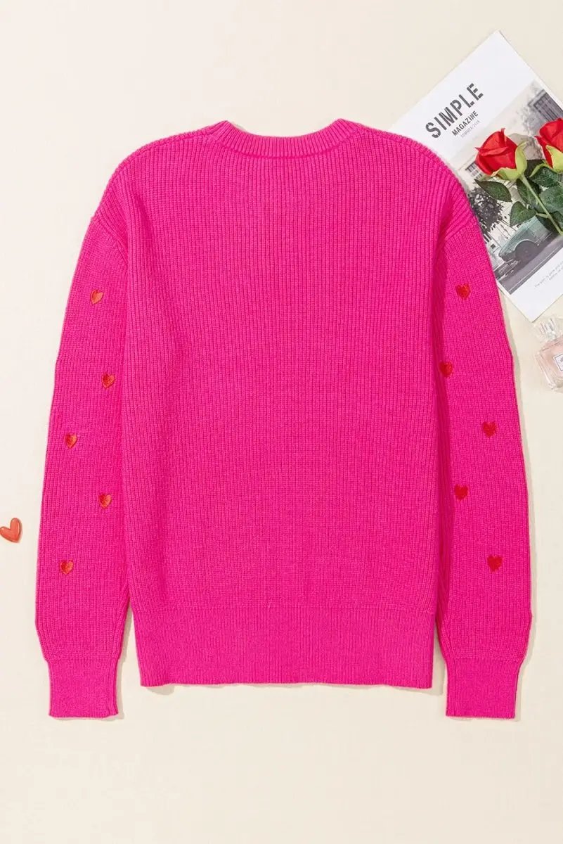 Rose Red Heart Shape Drop Shoulder Round Neck Sweater