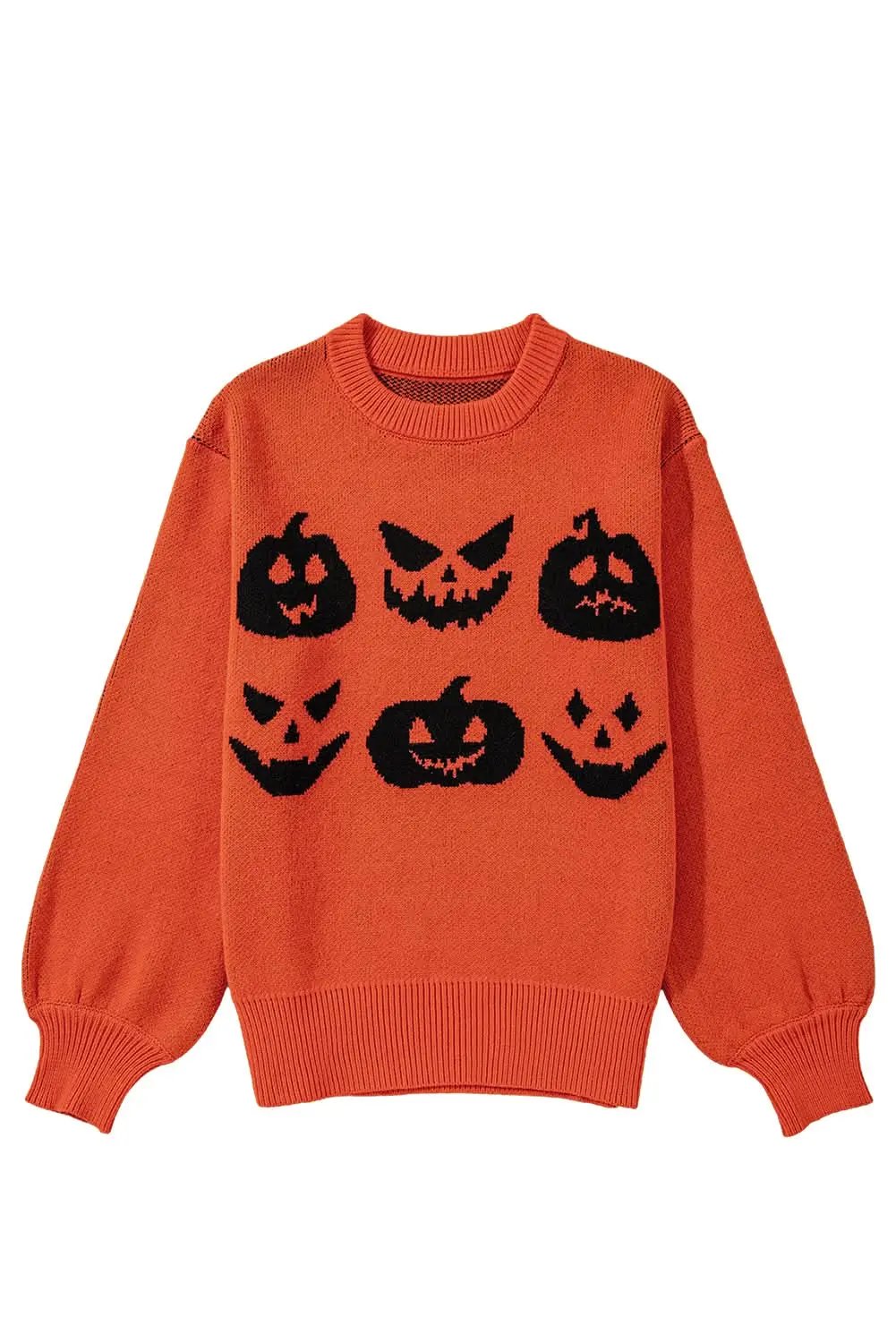 Love Salve Orange Pumpkin Face Halloween Party Women's Sweater - Spooky & Casual