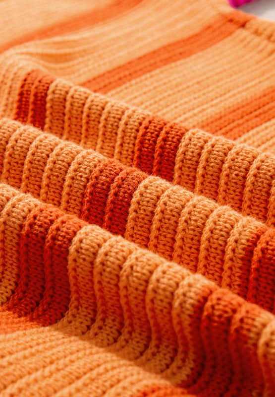 Trendsi Striped Sweater Women's Casual Long Sleeve Round Neck Knit Top - Stretchy & Comfortable ‐ Tangerine / S