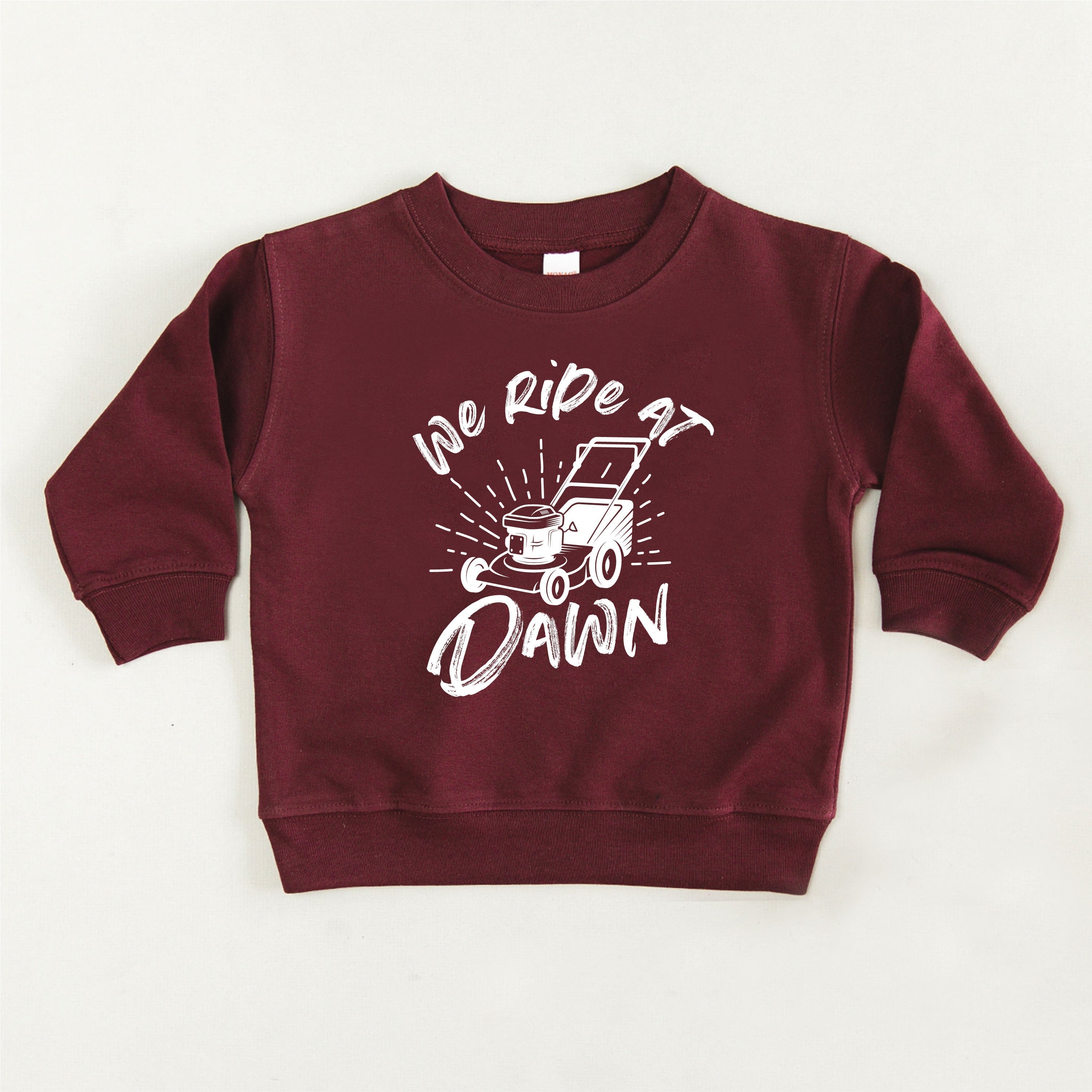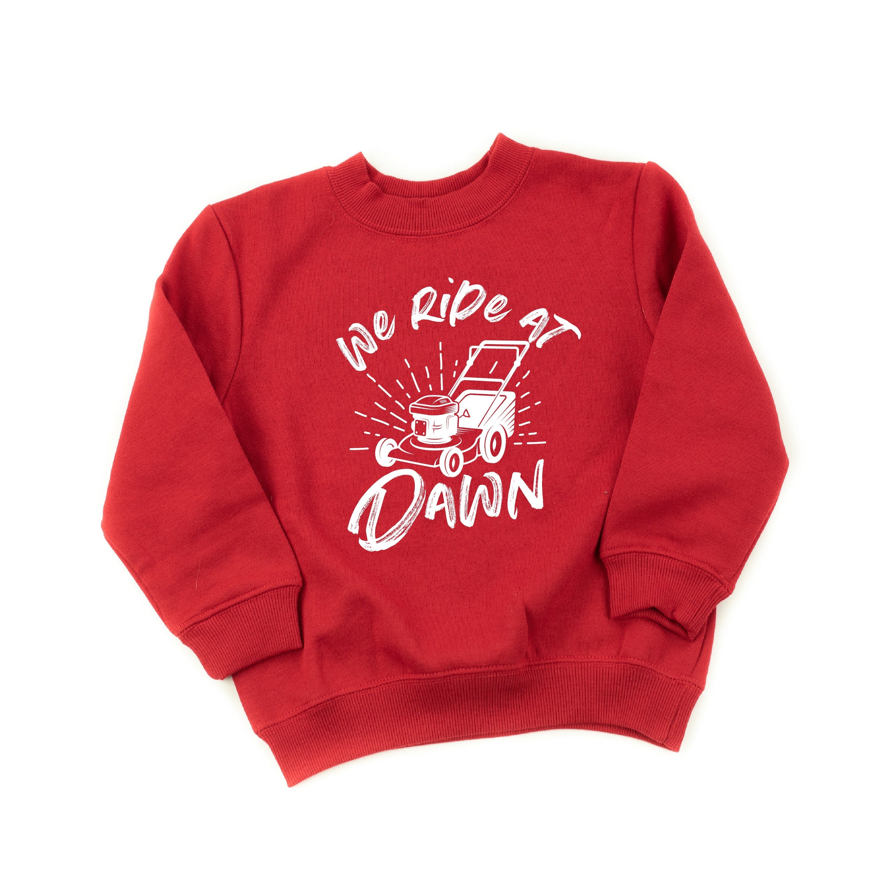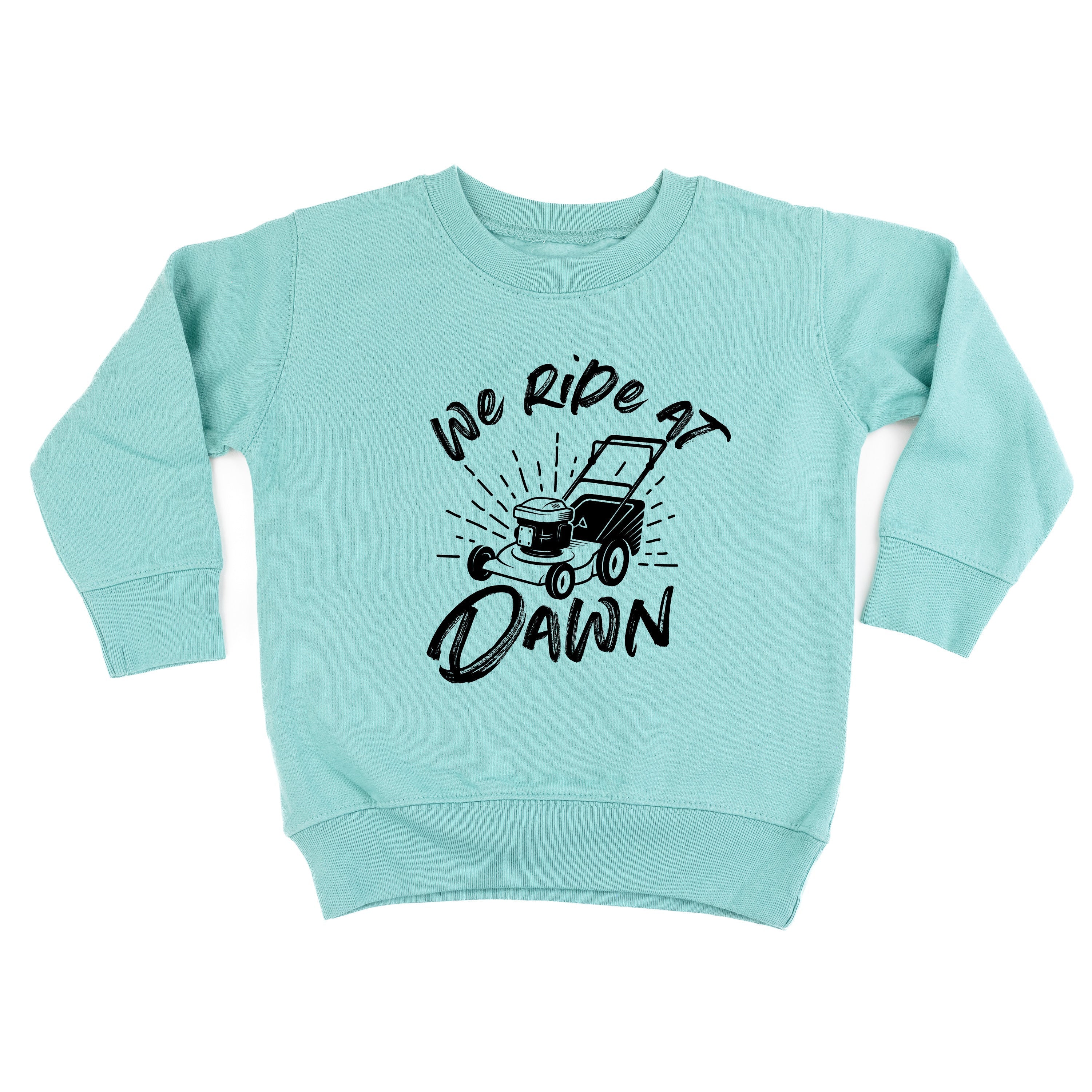 We Ride at Dawn - (Choose Your Mower) - Child Sweater ‐ Push Lawn Mower