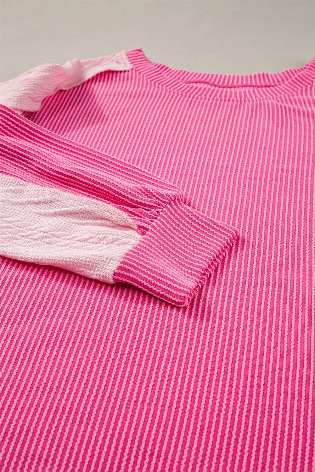 Love Salve Chic colorblock cable knit sweatshirt ‐ Bonbon / L / 75%Polyester+20%Viscose+5%Elastane