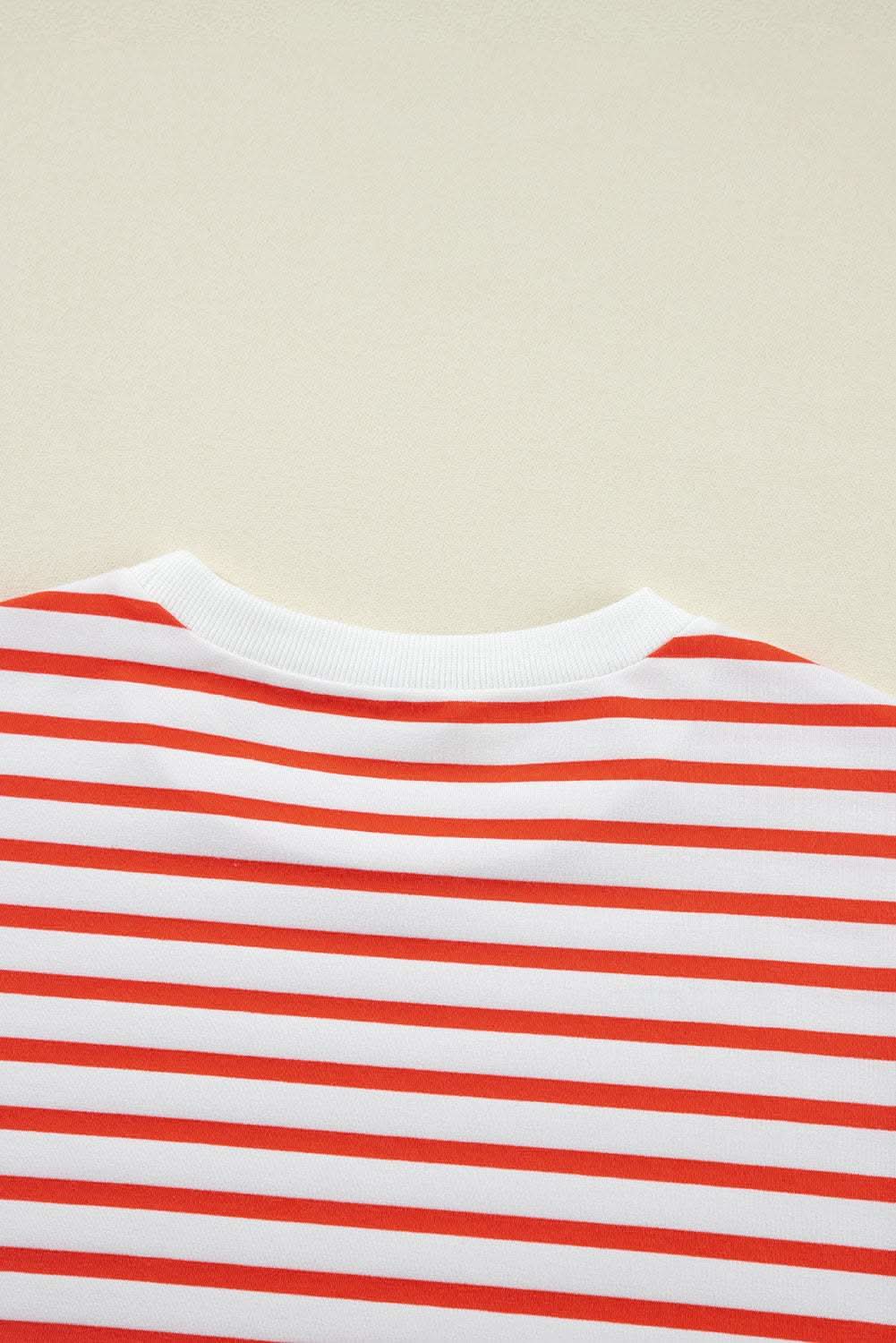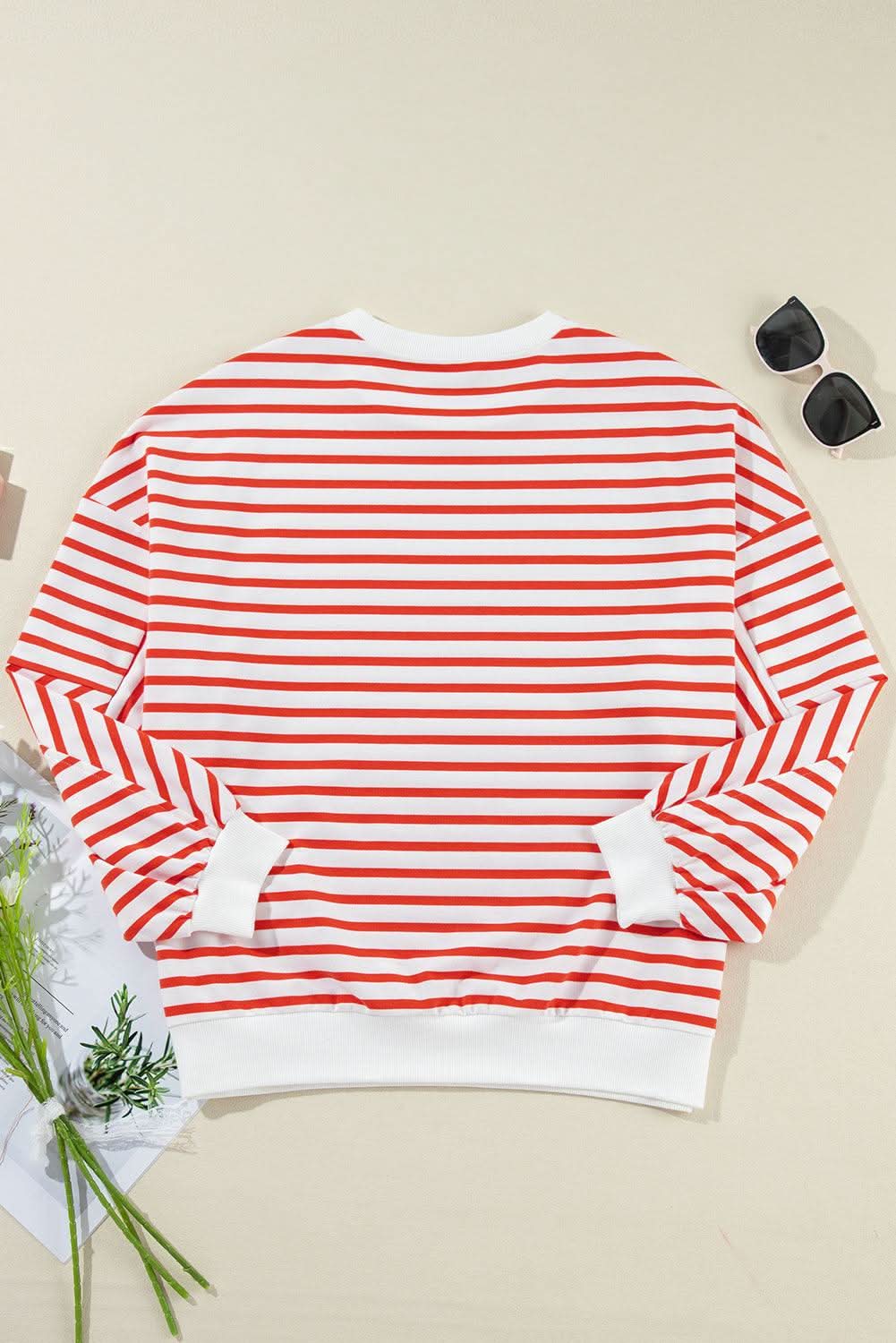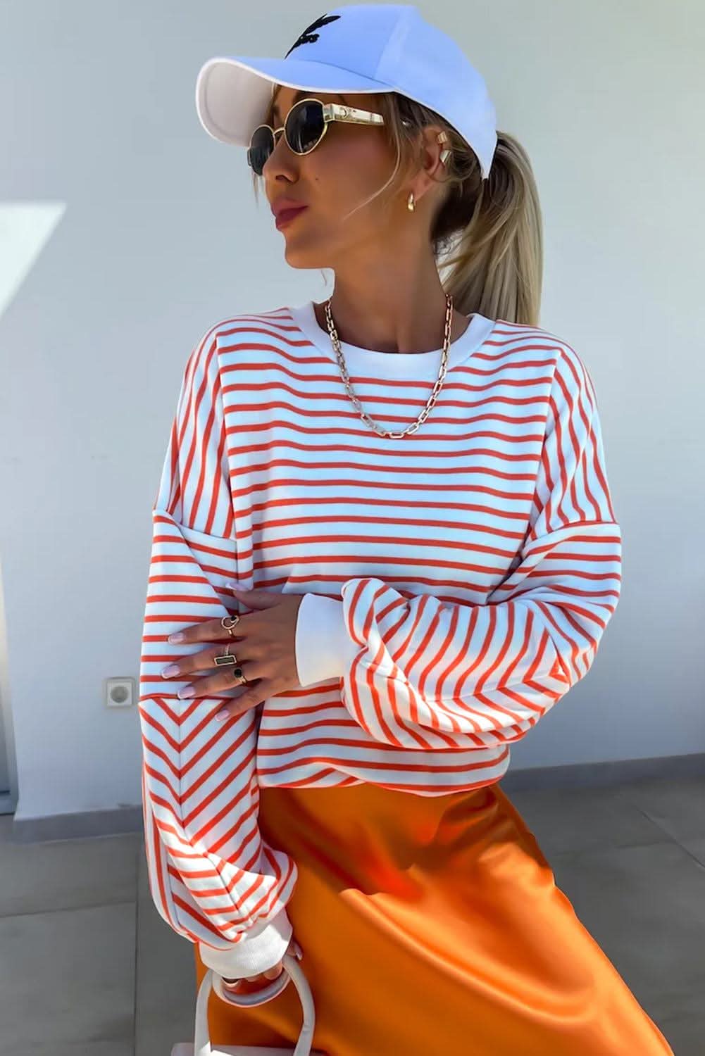 Love Salve Chic orange stripe oversized sweatshirt ‐ Orange Stripe / S / 70%Polyester+25%Cotton+5%Elastane
