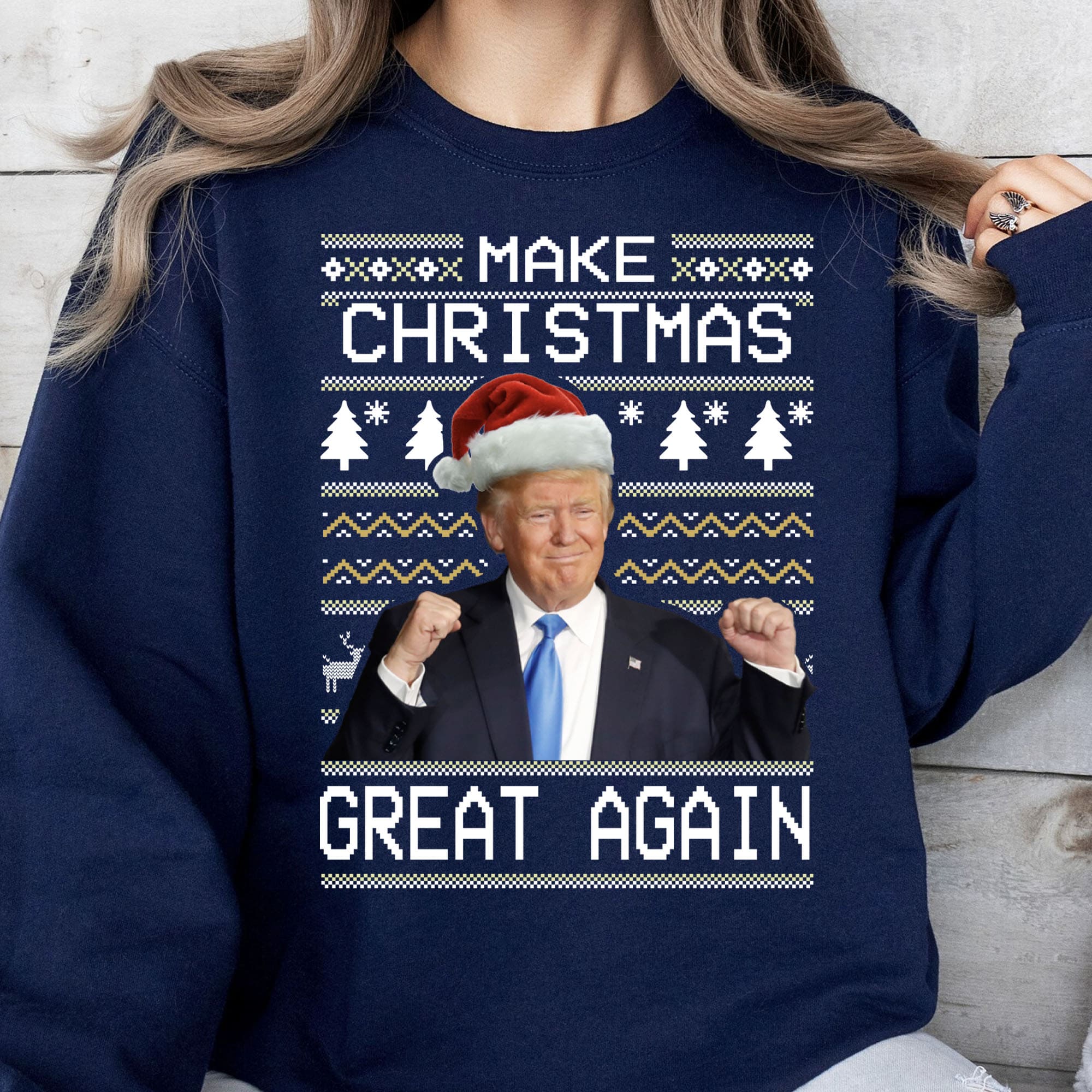 Make Christmas Great Again, Funny Trump Ugly Sweater, Trump 2024 Sweatshirt, Trump Supporters Christmas Sweatshirt T1380 - GOP ‐ Sweatshirt (Favorite) / S Navy / 5XL