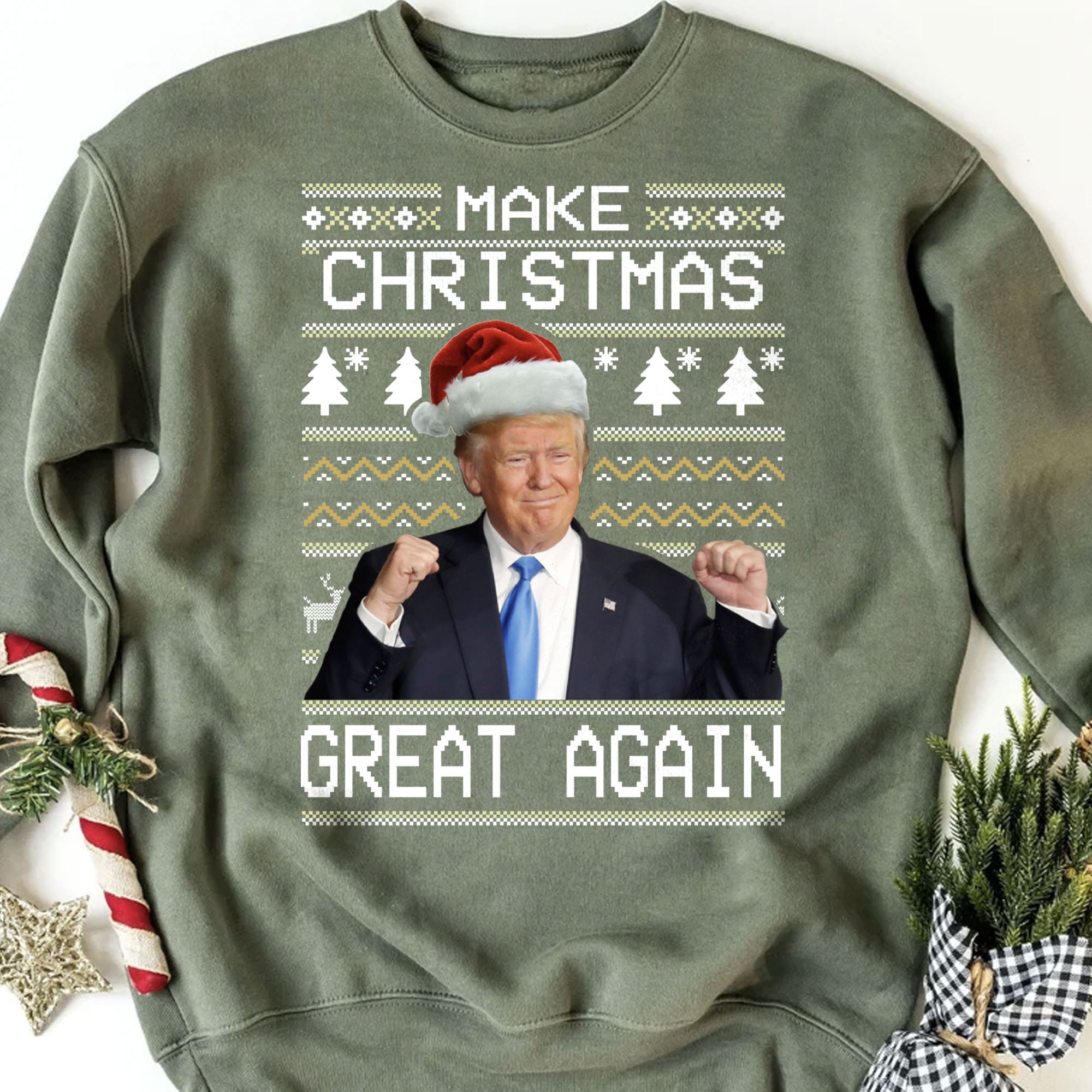 Make Christmas Great Again, Funny Trump Ugly Sweater, Trump 2024 Sweatshirt, Trump Supporters Christmas Sweatshirt T1380 - GOP ‐ Sweatshirt (Favorite) / Military / XL