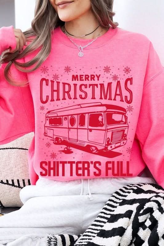 Merry Christmas Shitter's Full Graphic Sweatshirts ‐ SAFETY PINK / S