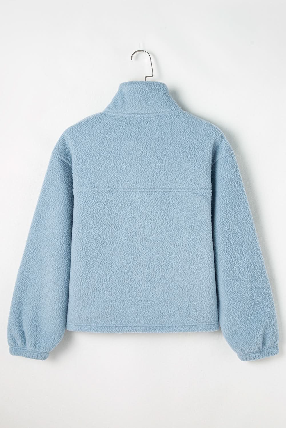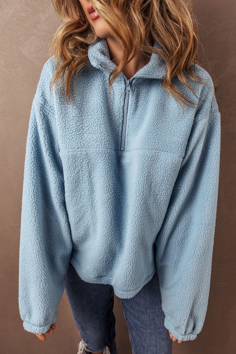 Myosotis Collared Zipper Drop Shoulder Fleece Sweatshirt ‐ Myosotis / S / 100%Polyester