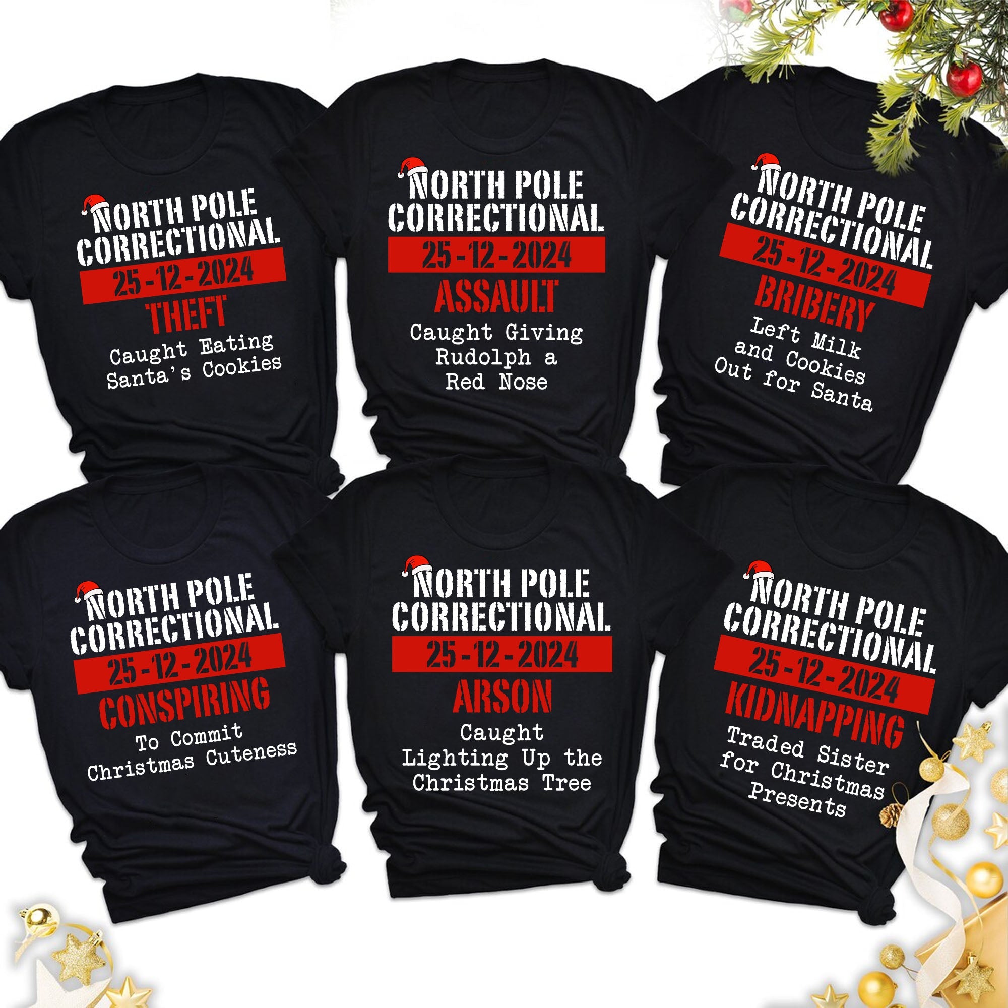North Pole Correctional, Funny Christmas Family Matching Shirt, Personalized Custom Family Sweatshirt C842 ‐ Basic Tee / Black / 6XL