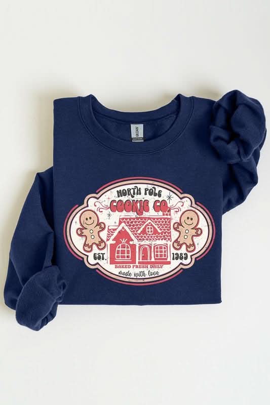North Pole Gingerbread Cookie Graphic Sweatshirts ‐ NAVY / S