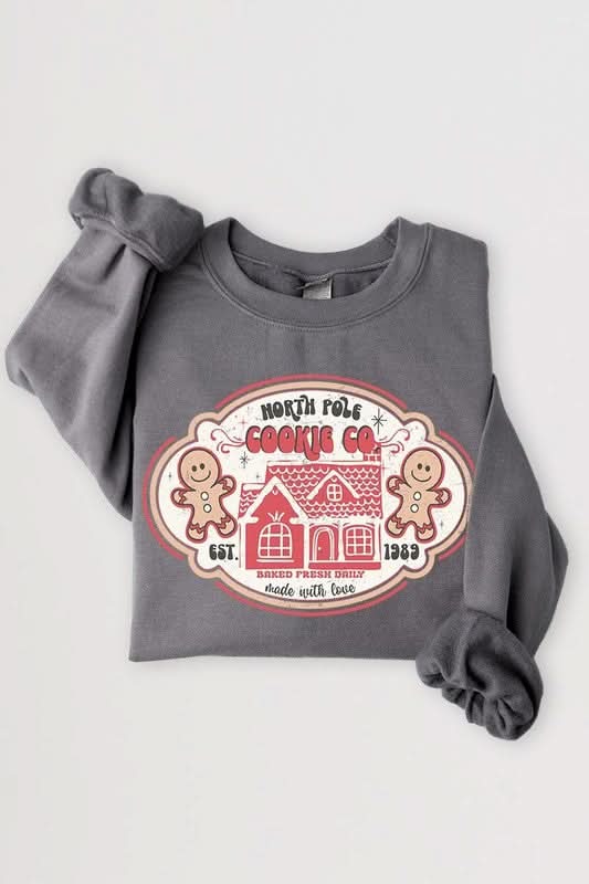 North Pole Gingerbread Cookie Graphic Sweatshirts ‐ CHARCOAL / S