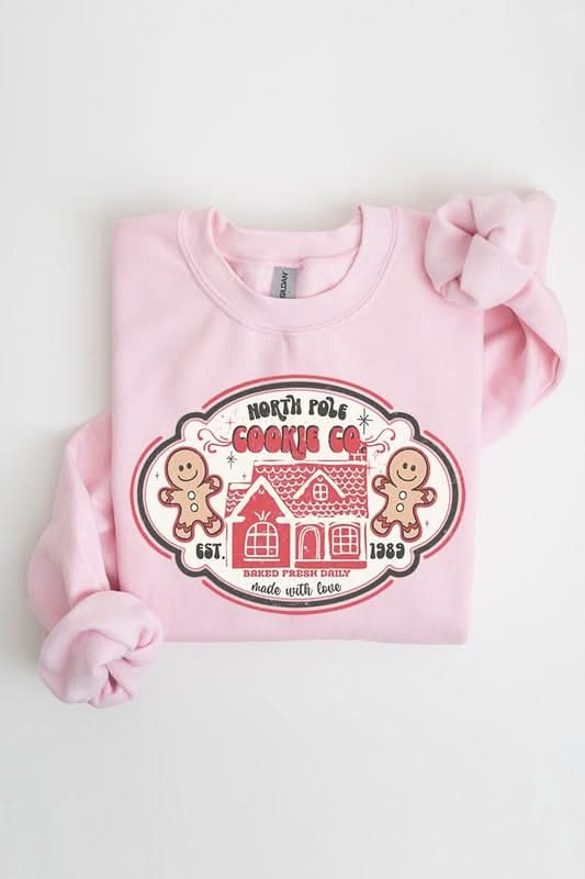 North Pole Gingerbread Cookie Graphic Sweatshirts ‐ LIGHT PINK / M