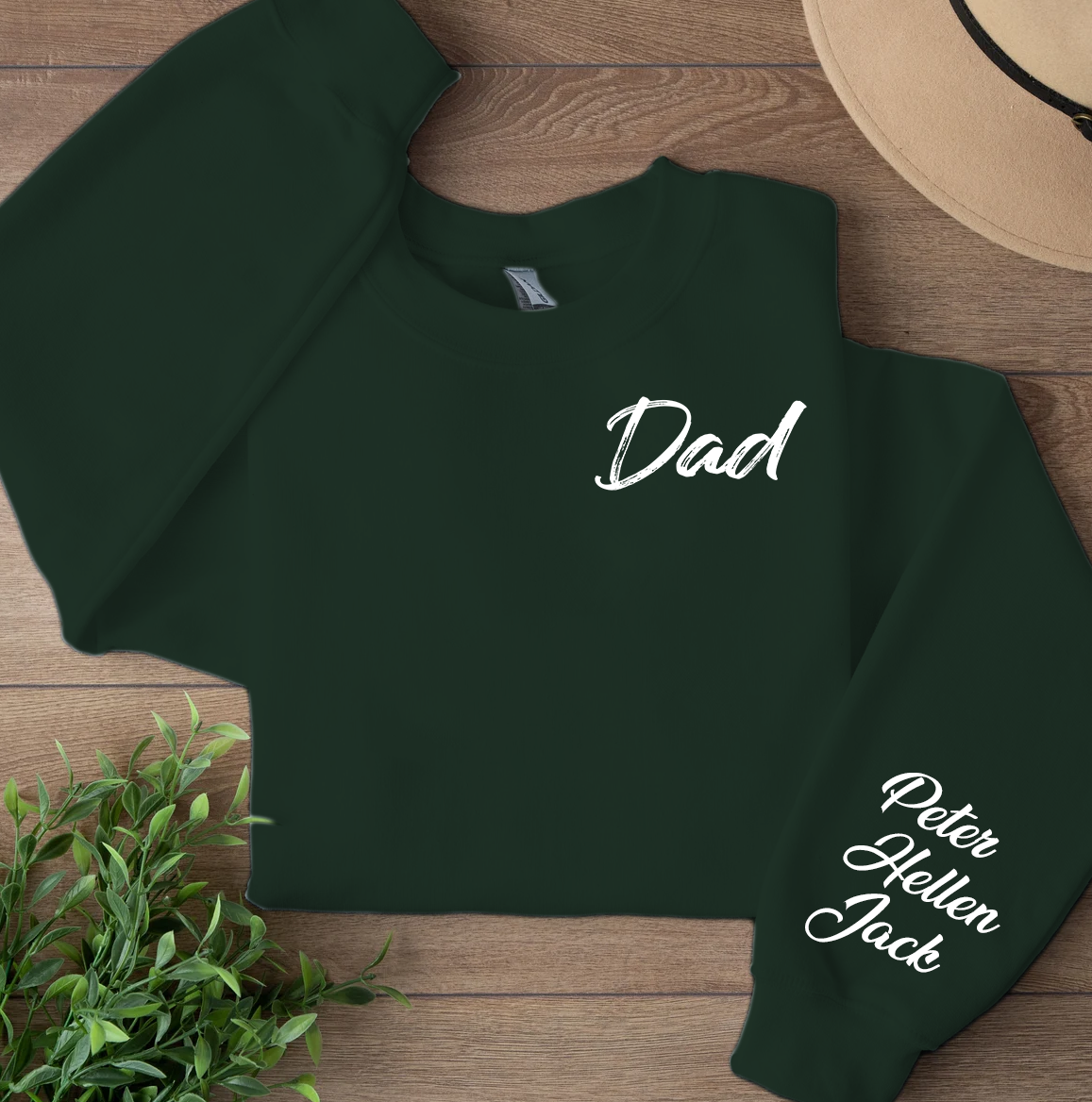 Personalized Dad Sweatshirt With Kids’ Names on Sleeve | Custom EST Year Father’s Day Gift For New Dad, Daddy Sweater 682242 ‐ Forest / 4XL