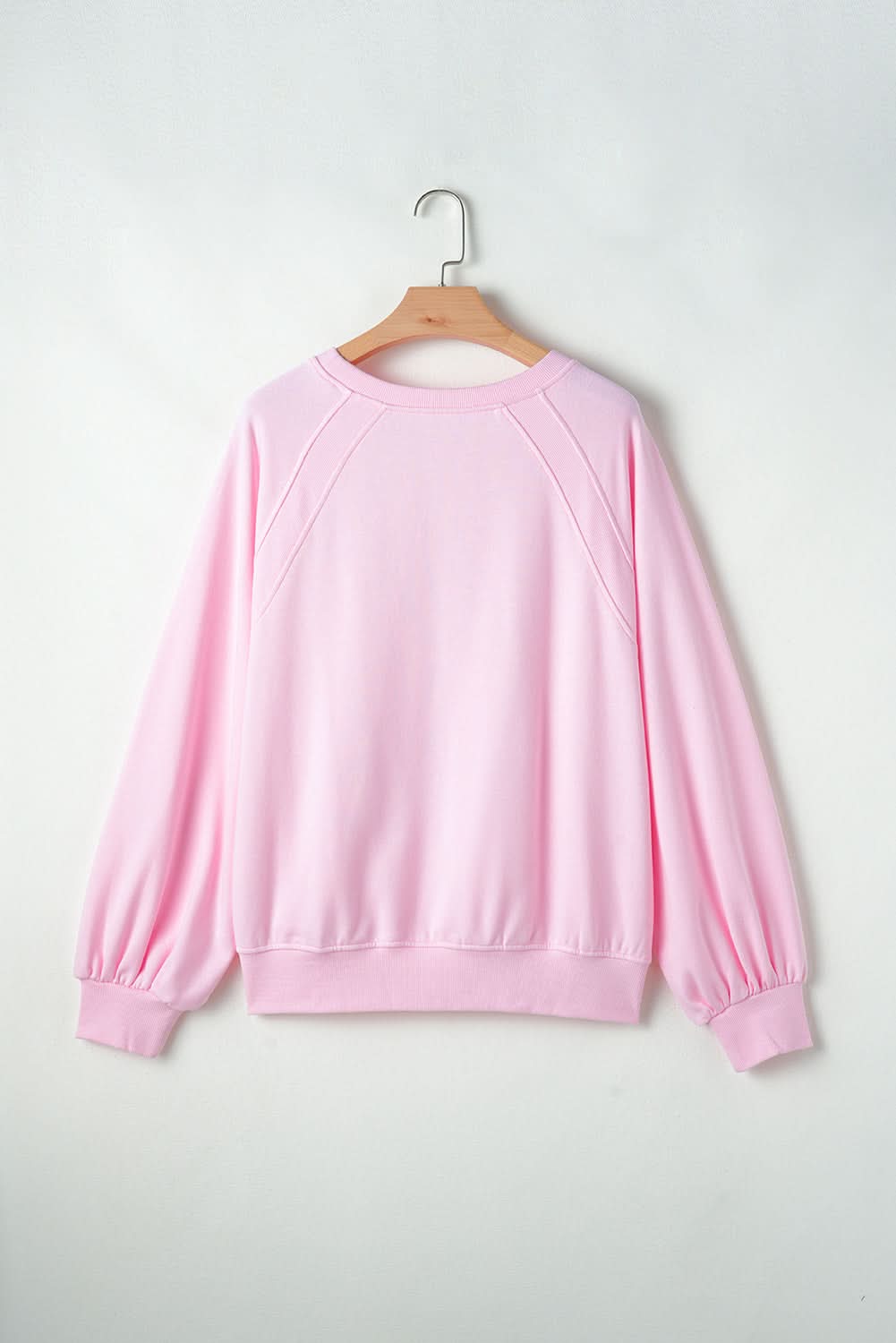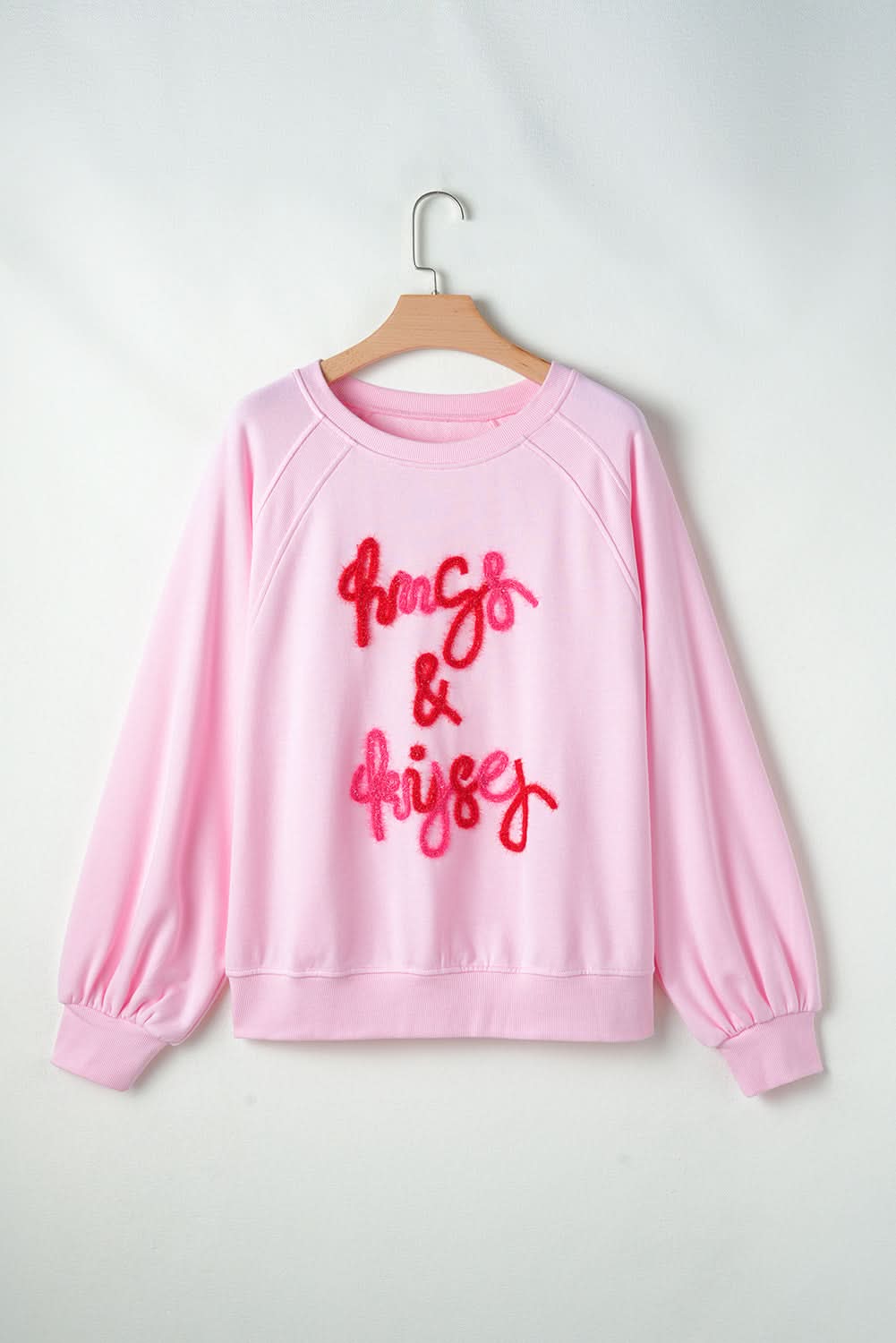 Pink Hugs and Kisses Pop Up Embroidered Raglan Sleeve Sweatshirt ‐ Pink / M / 65%Polyester+35%Cotton