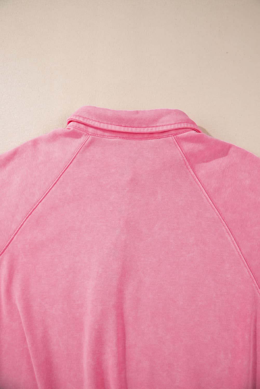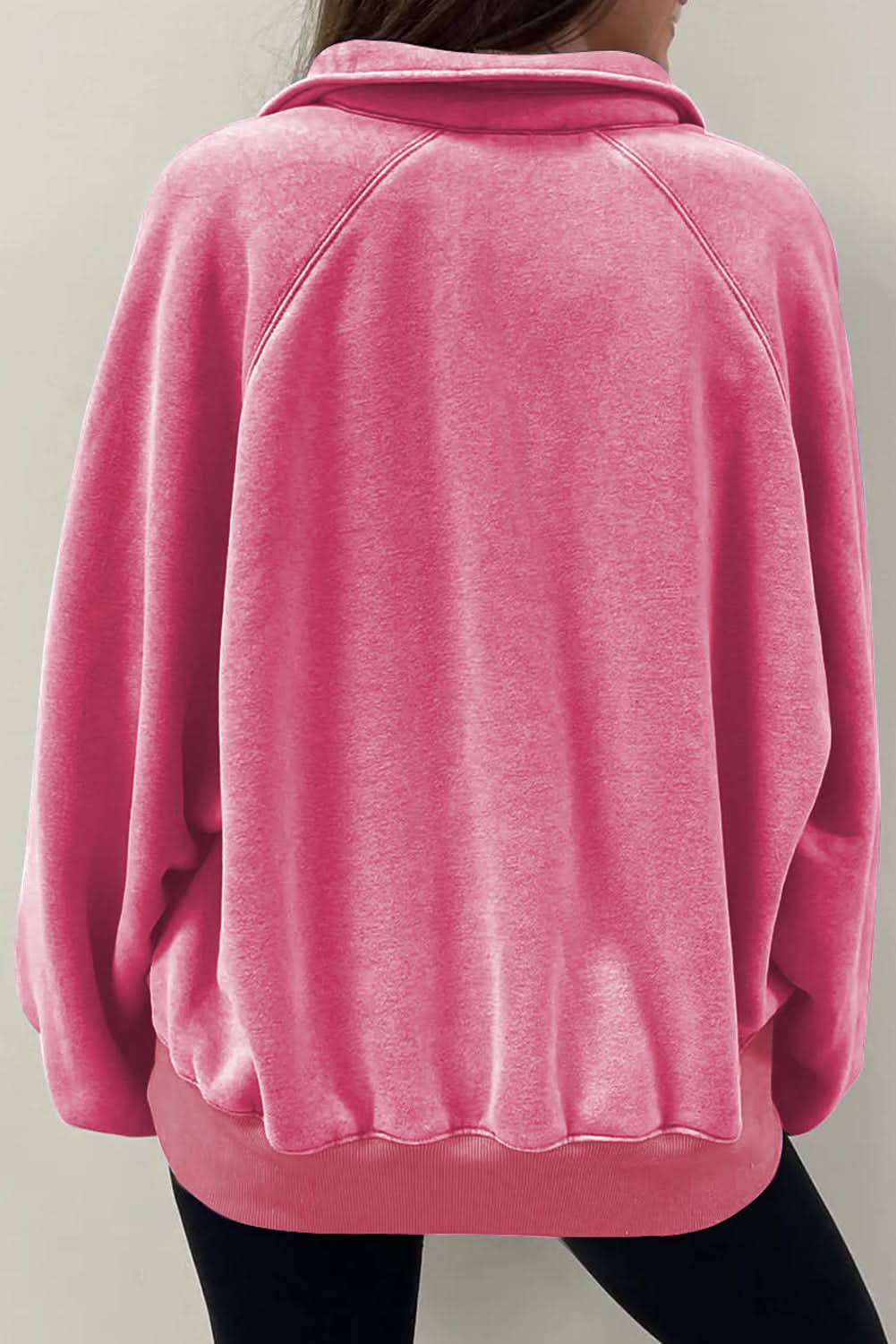 Pink Solid Snap Buttons Collared Balloon Sleeve Oversized Sweatshirt ‐ Pink / S / 80%Cotton+20%Polyester