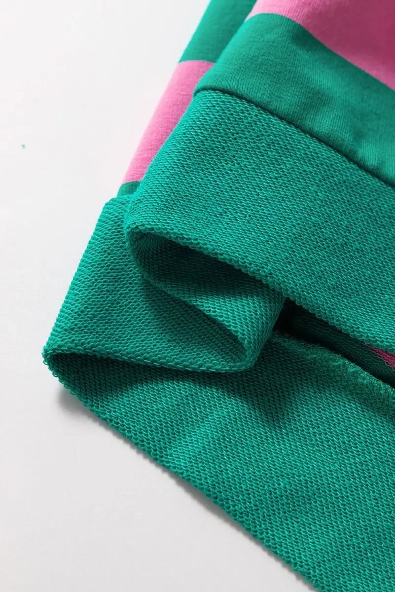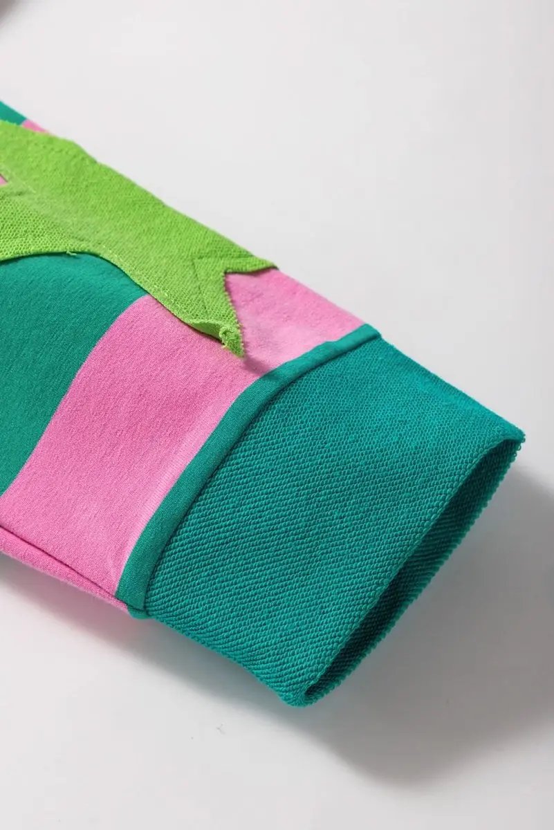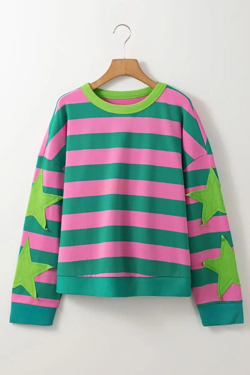 Pink Stripe Star Patchwork Round Neck Pullover Sweatshirt