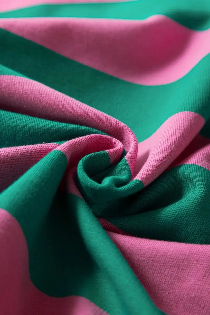 Stylish Design: The Pink Stripe Star Patchwork Round Neck Pullover Sweatshirt features a trendy striped pattern that enhances its classic appeal. The unique star patchwork makes it a fashionable statement piece.