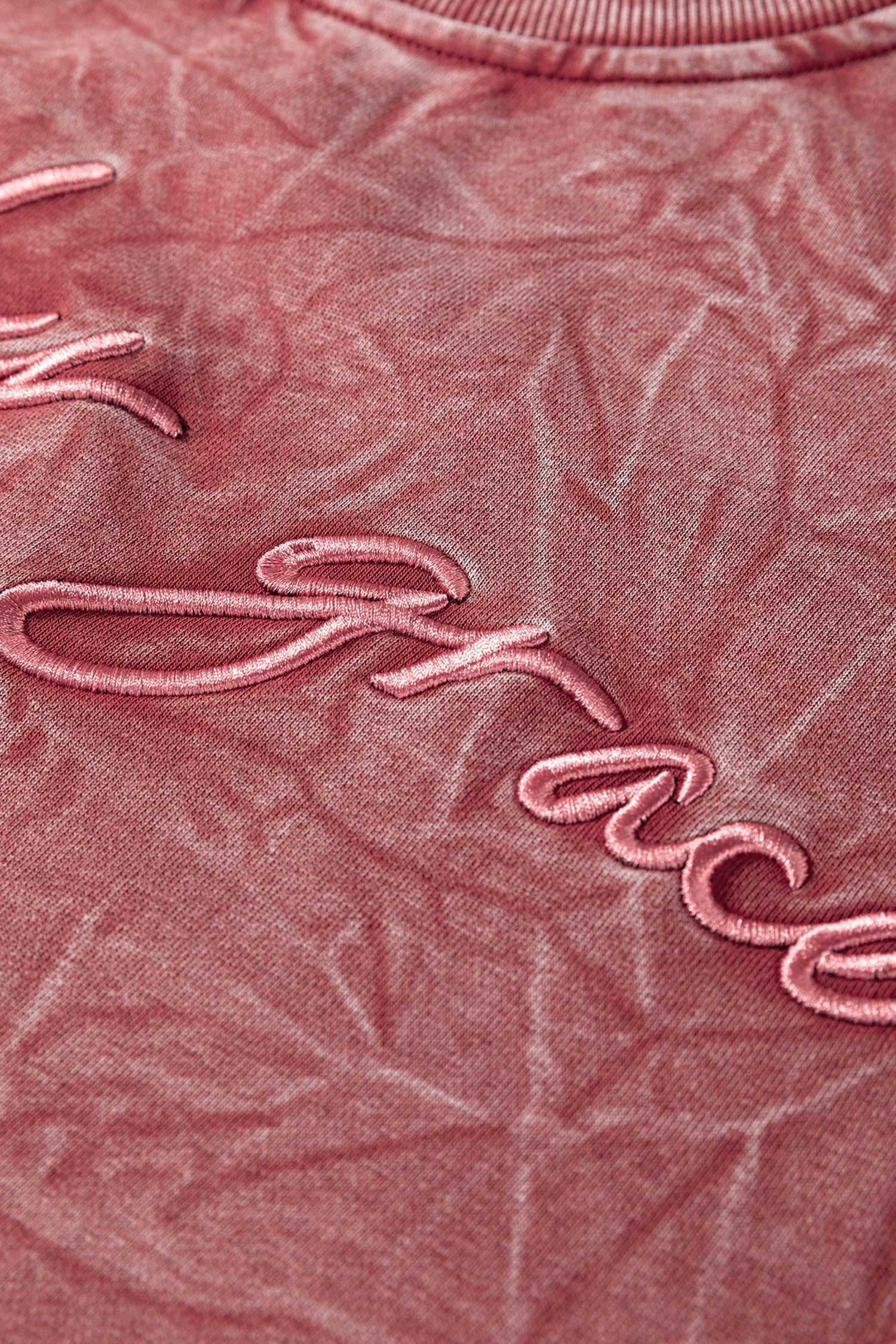 SAVED BY GRACE Embroidered Mineral Wash Sweatshirt ‐ Mineral Red / S