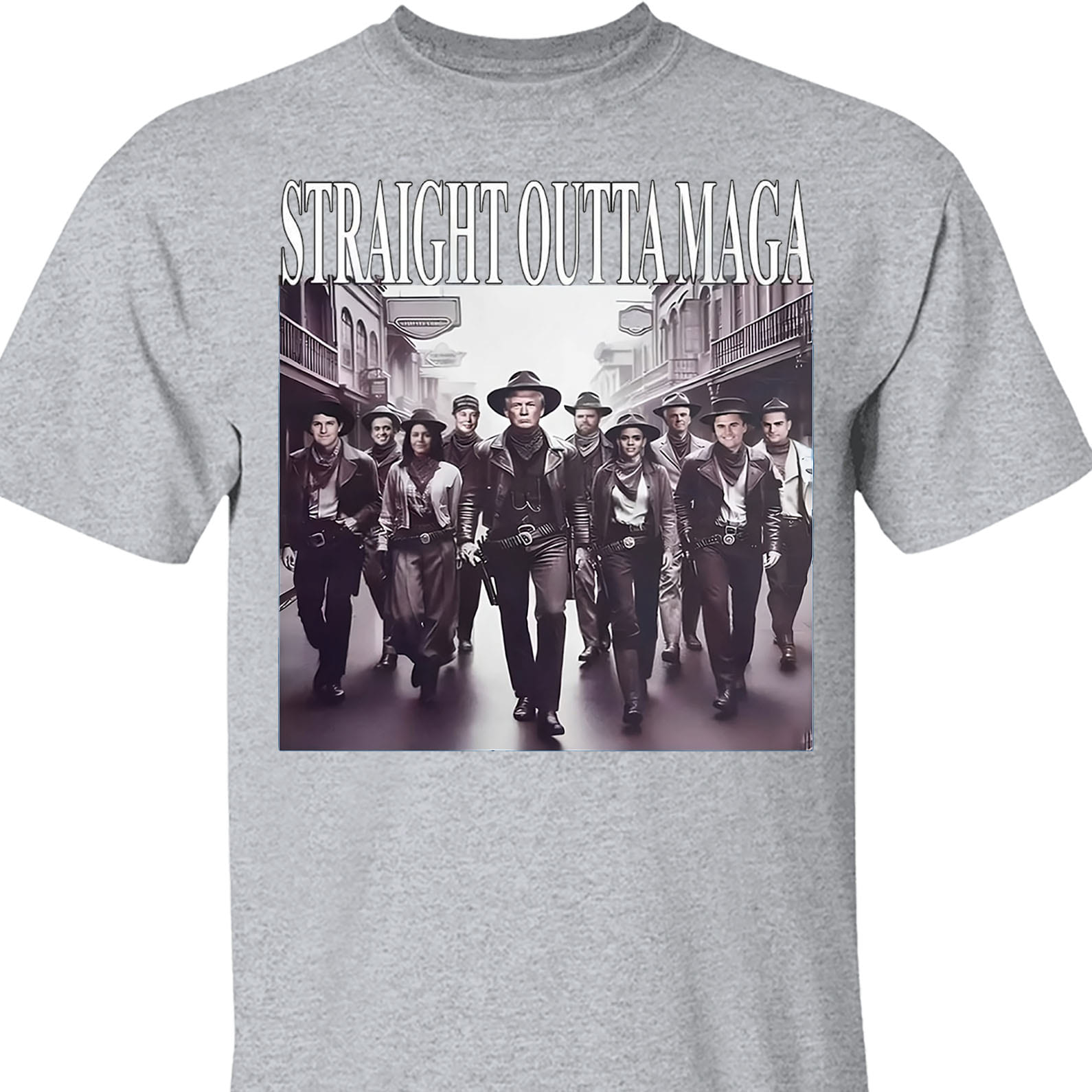 Straight Outta MAGA, Humorous Trump Shirt, Trump 47th President Sweatshirt Bright T1754 - GOP ‐ Basic Tee / Sport Grey / L
