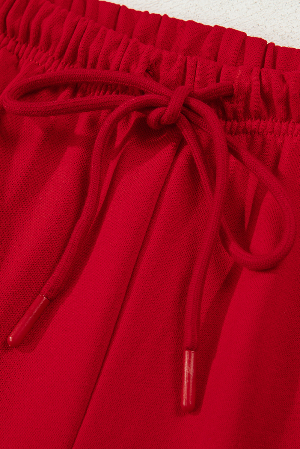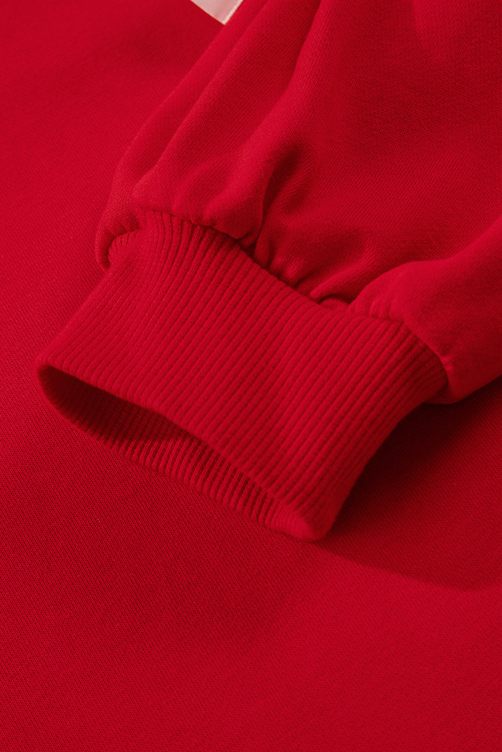 Stripe Collar Patchwork Bow Sweatshirt and Shorts Set ‐ Racing Red / L