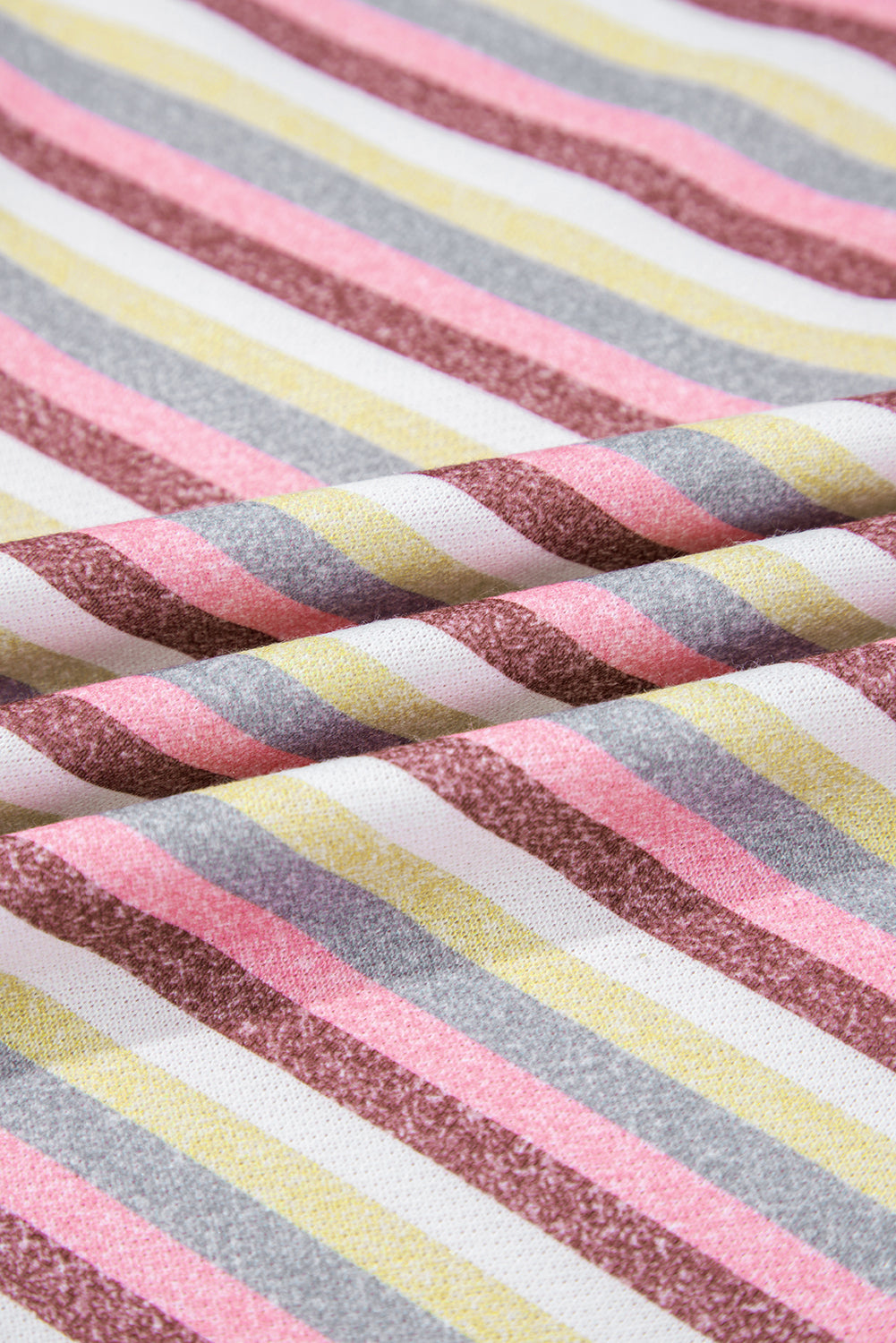 Stripe Patchwork Reverse Seam Henley Sweatshirt ‐ Pink / S