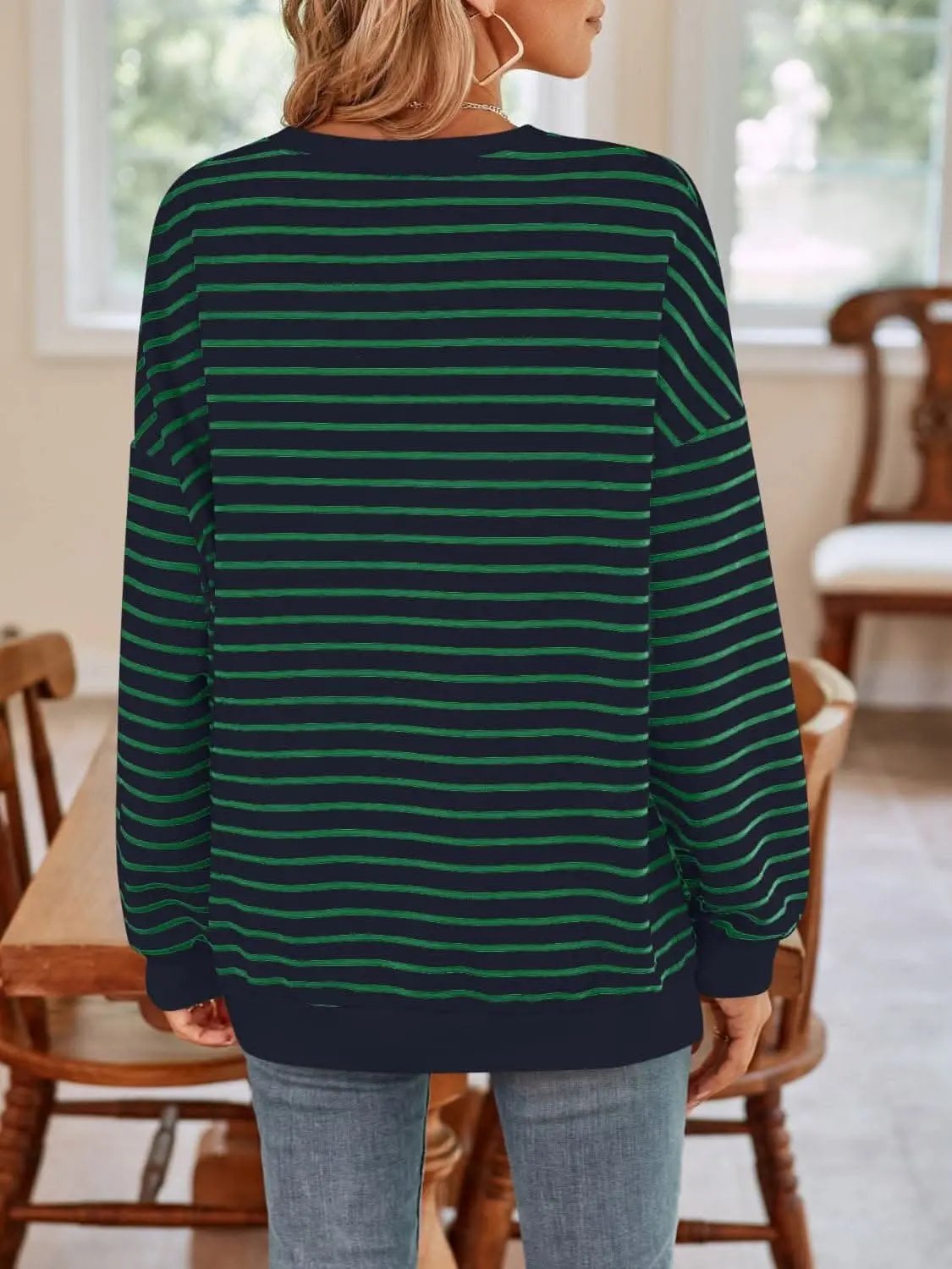 Trendsi Cozy striped crewneck sweatshirt ‐ Dark Green / M