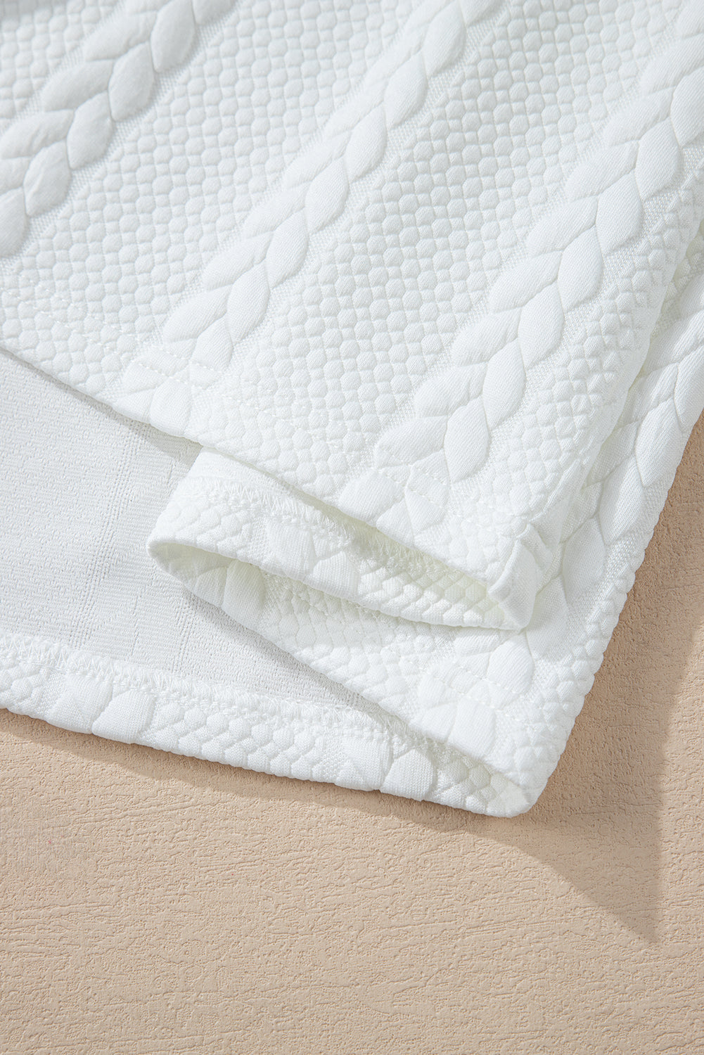White Cable Textured Loose Plus Size Sweatshirt ‐ White / 1X - 14W-16W
