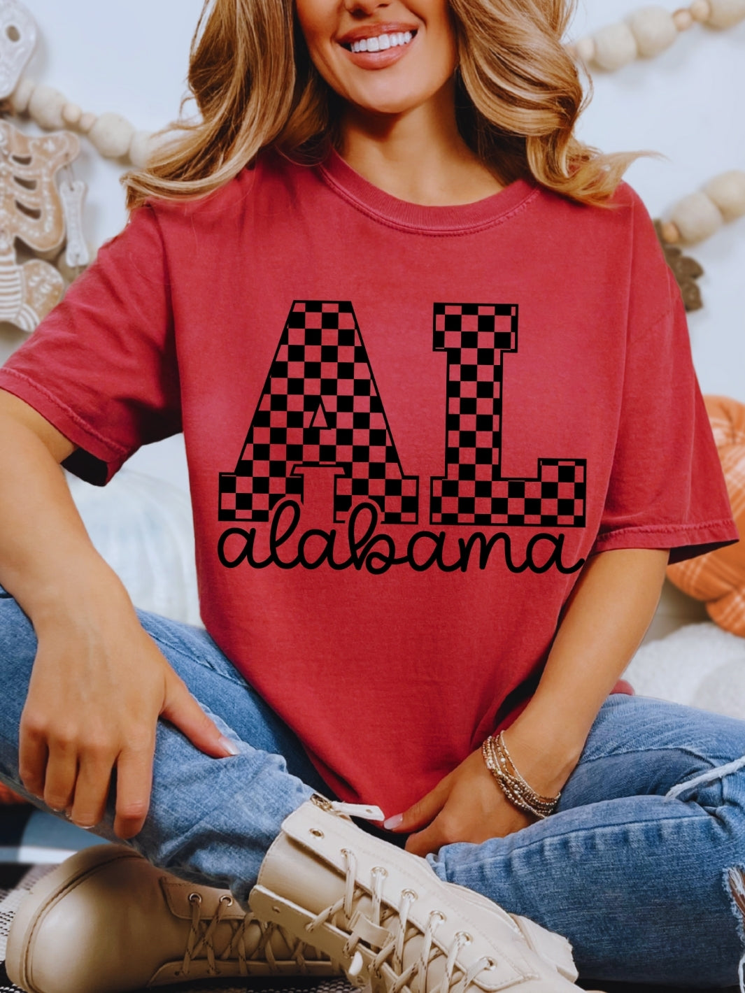 Comfort Colors Checkered Alabama T-Shirt ‐ XL / Crimson
