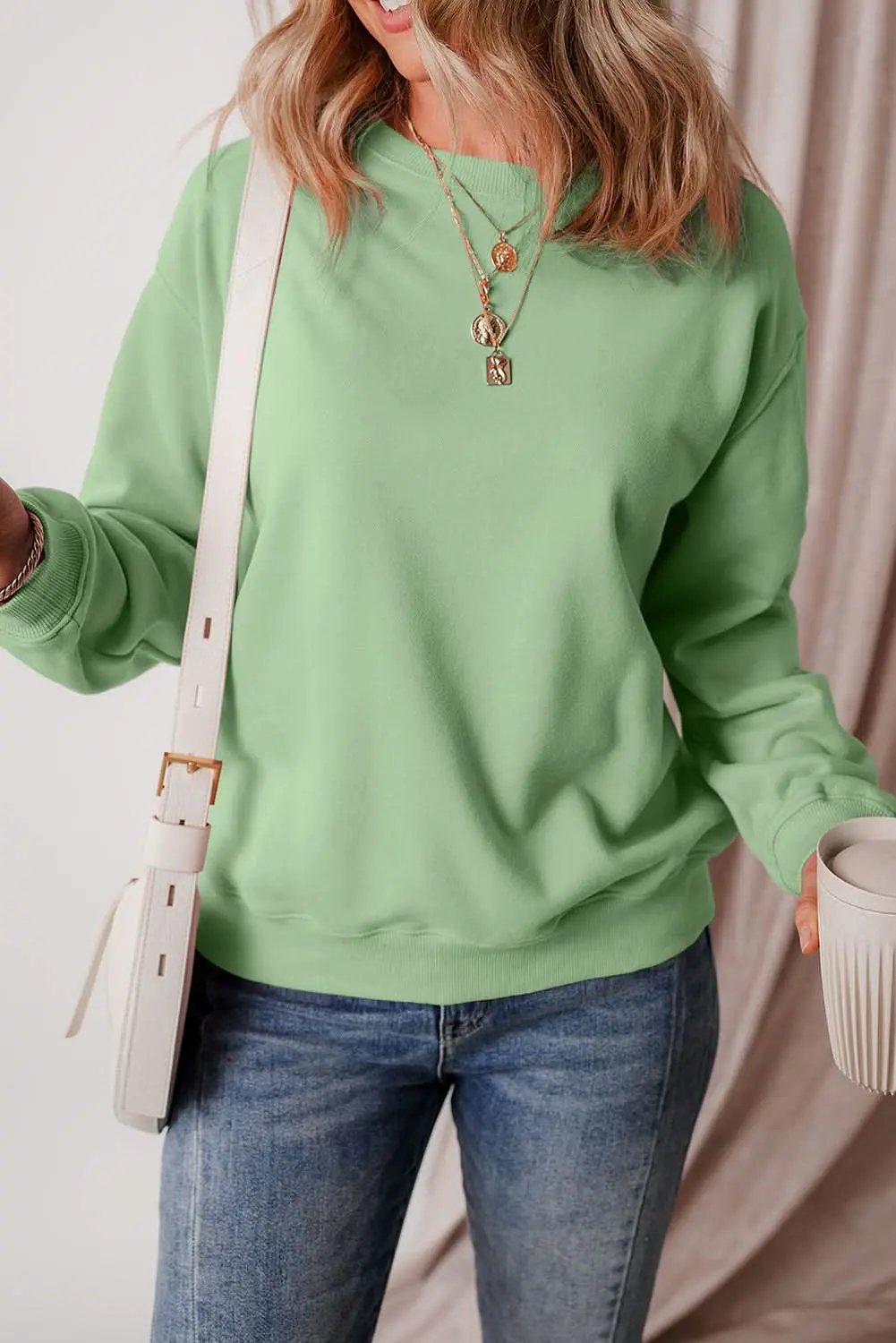 Stay cozy and stylish this winter with our Smoke Green Solid Fleece Lined Drop Shoulder Terry Sweatshirt. Designed for comfort and contemporary style, this sweatshirt enhances your wardrobe effortlessly.