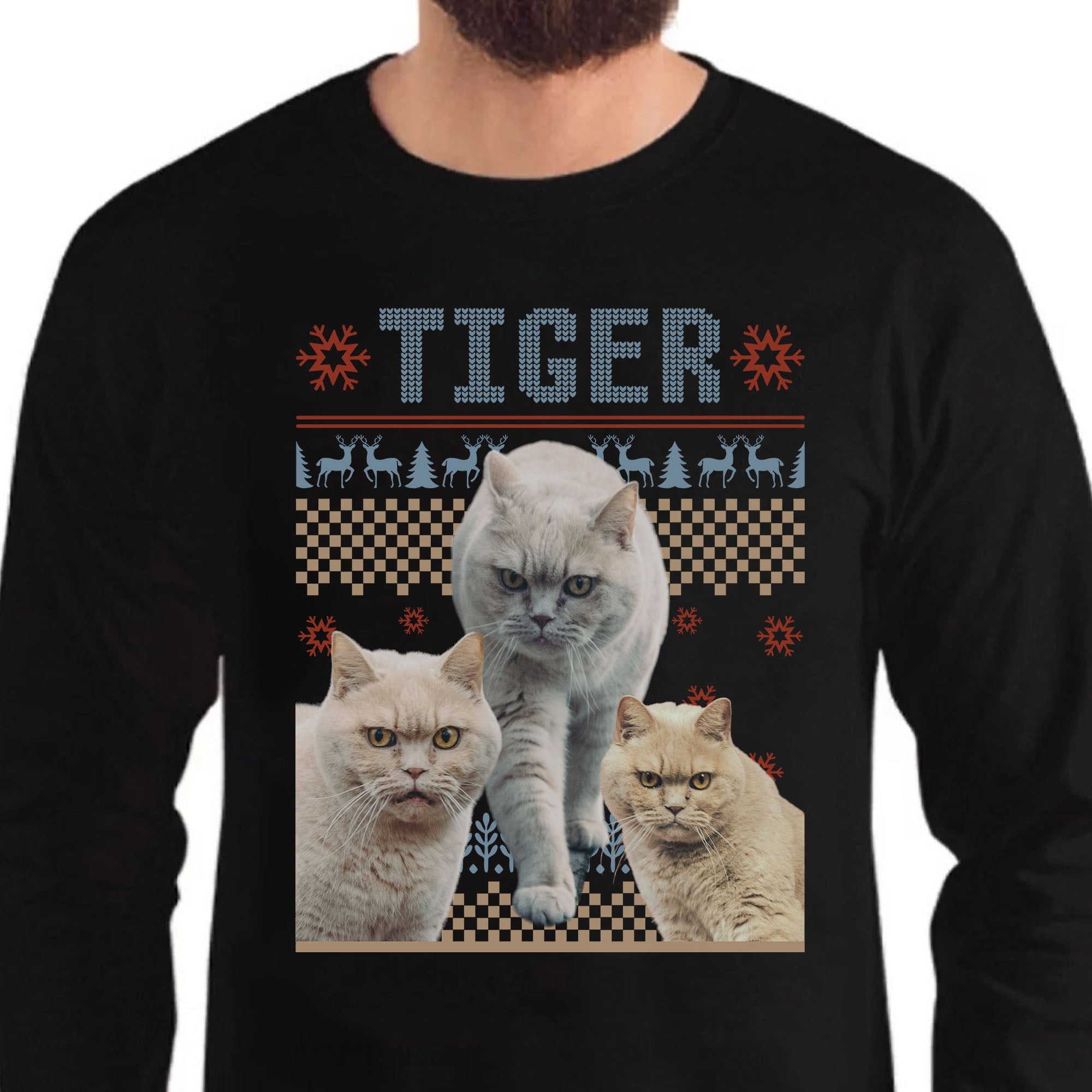 Custom Photo Ugly Christmas Sweatshirt, Personalized with Your Own Dog or Cat Photo Sweatshirt C803 ‐ Long Sleeve / Colour Black / 3XL