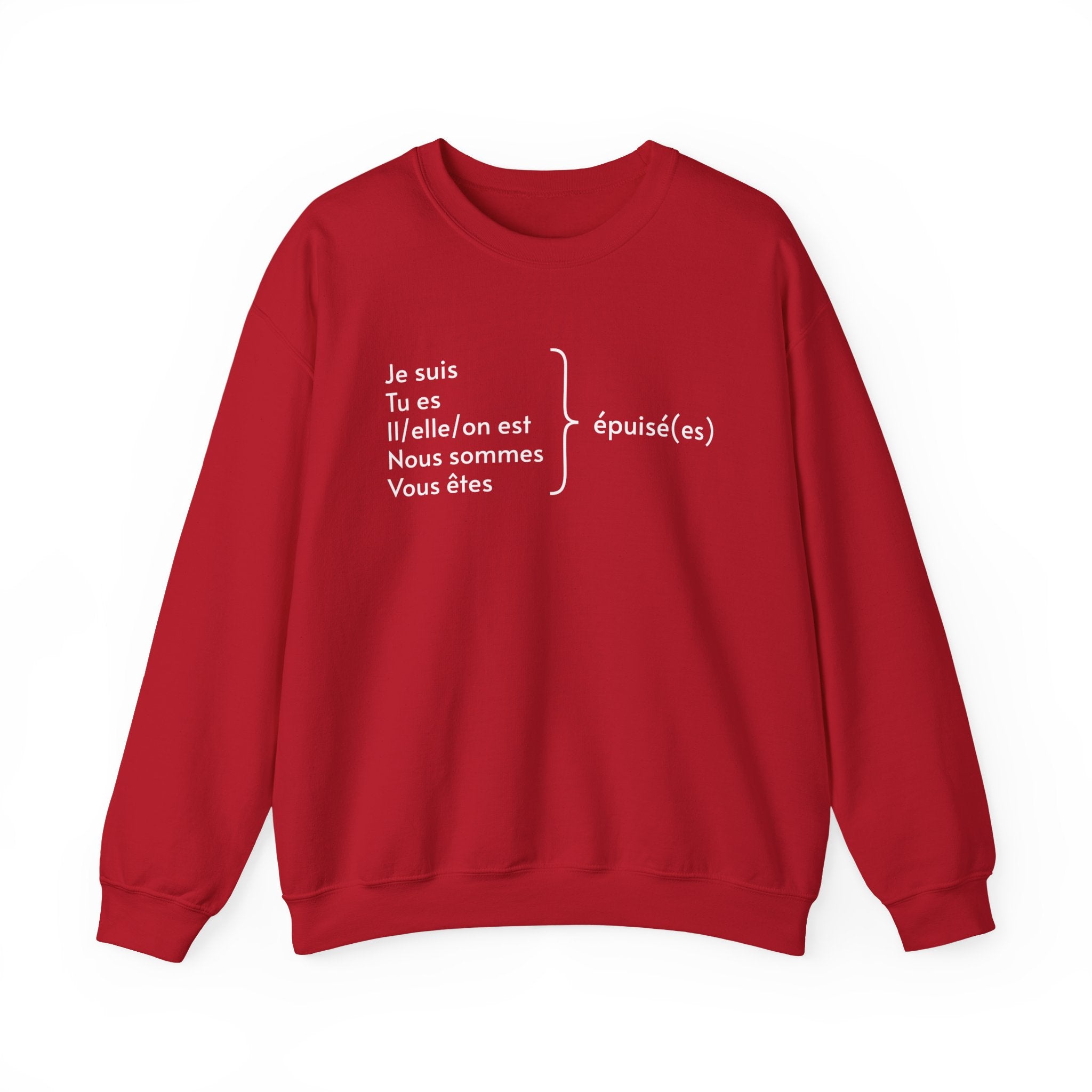 Je suis épuisée (I am exhausted) French grammar sweatshirt