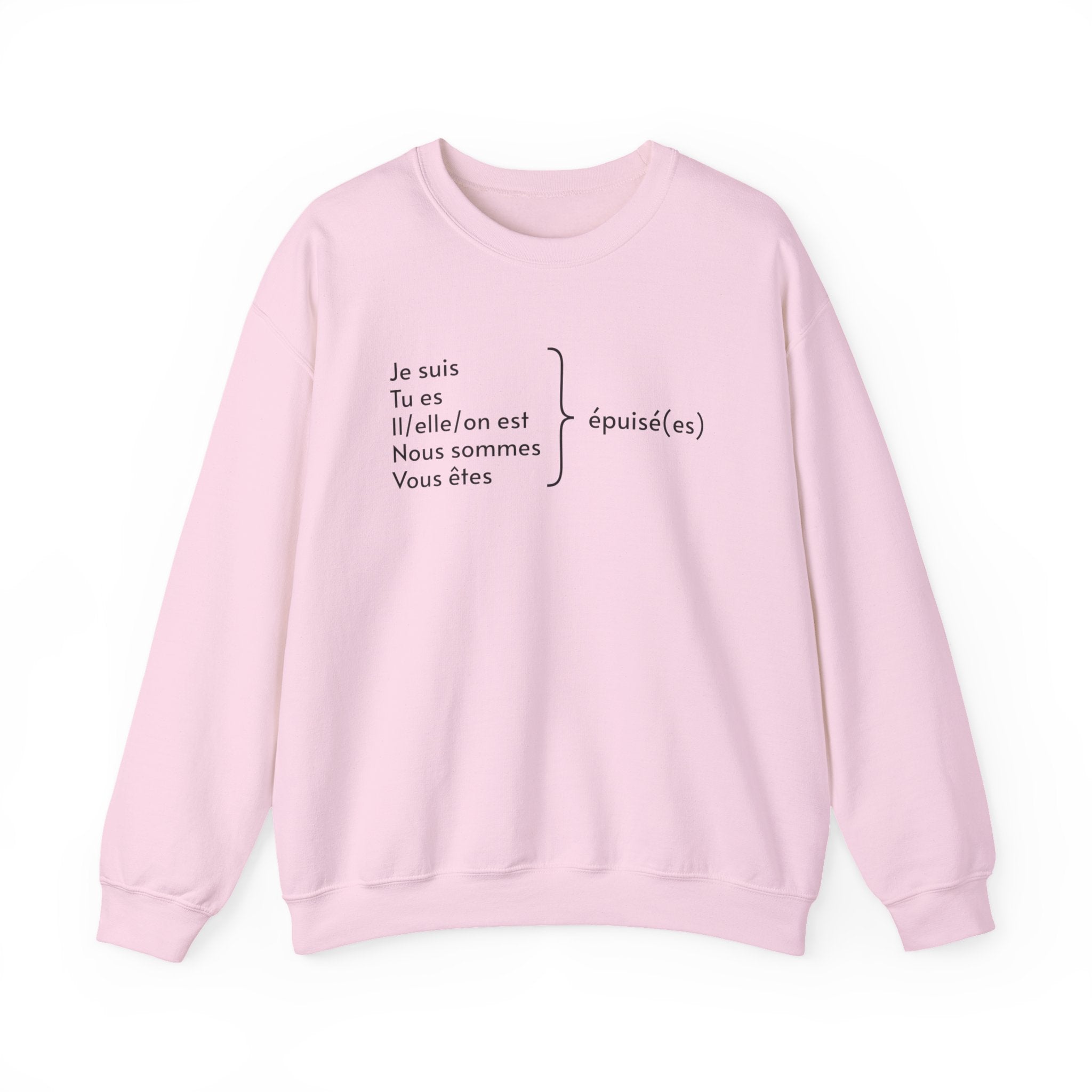 Je suis épuisée (I am exhausted) French grammar sweatshirt ‐ Light Pink / L