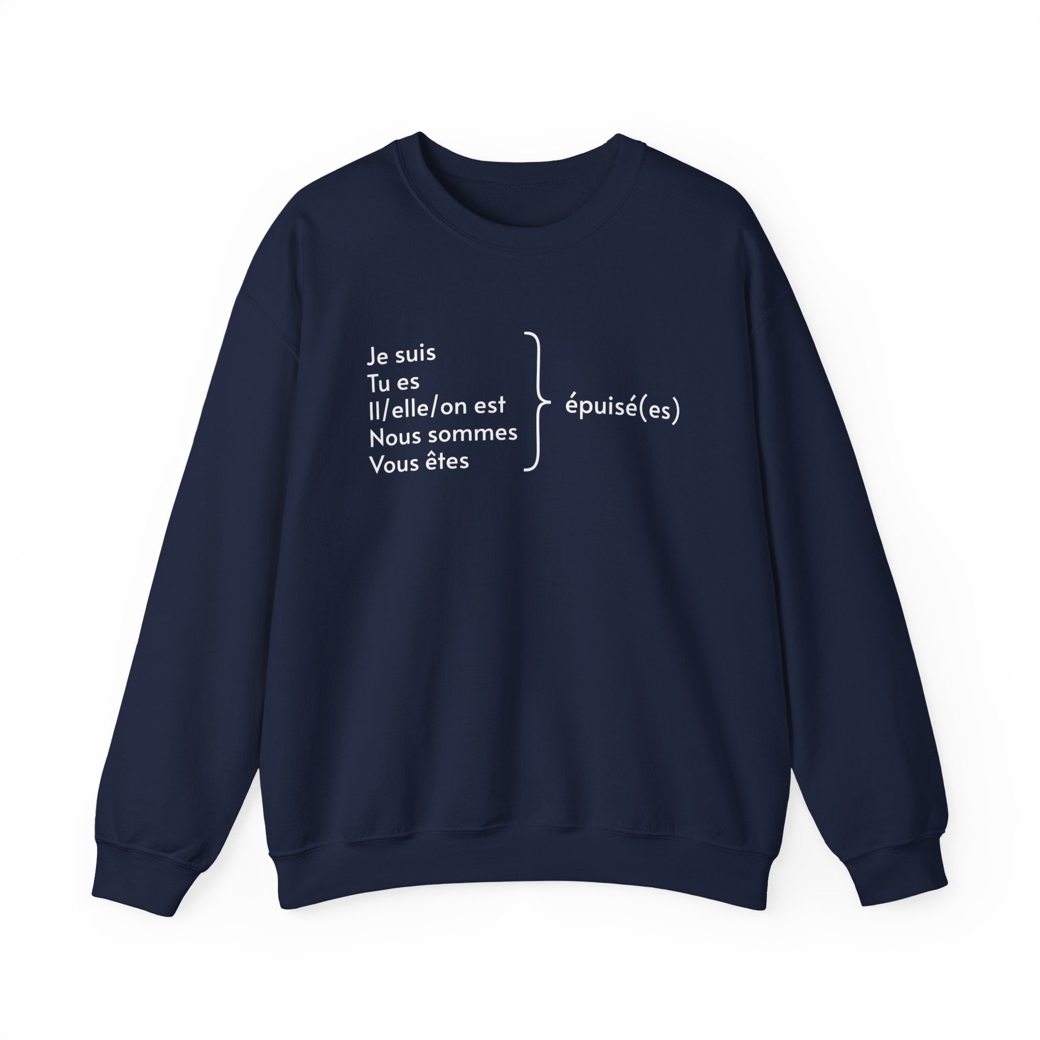 Je suis épuisée (I am exhausted) French grammar sweatshirt ‐ Navy / L
