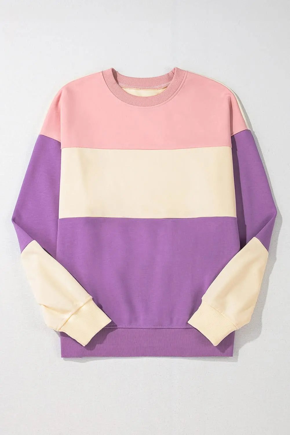 Experience comfort and modern style with the Meadow Mauve Colorblock Patchwork Drop Shoulder Sweatshirt. This relaxed-fit layer combines soft texture with a contemporary silhouette, ideal for everyday wear.