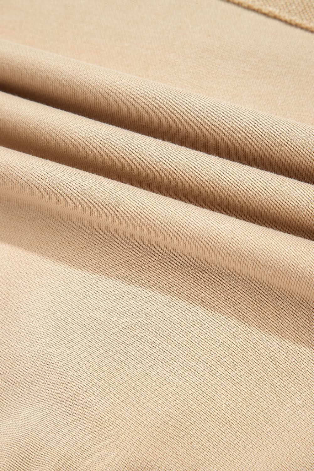 Made from a 65% polyester and 35% cotton blend, this sweatshirt balances softness with durability. The parchment-colored body features star patchwork accents and intentionally exposed seams to achieve a contemporary, industrial look. An oversized silhouette offers a relaxed, comfortable fit with a classic round neckline and long sleeves, suitable for layering during fall and winter.