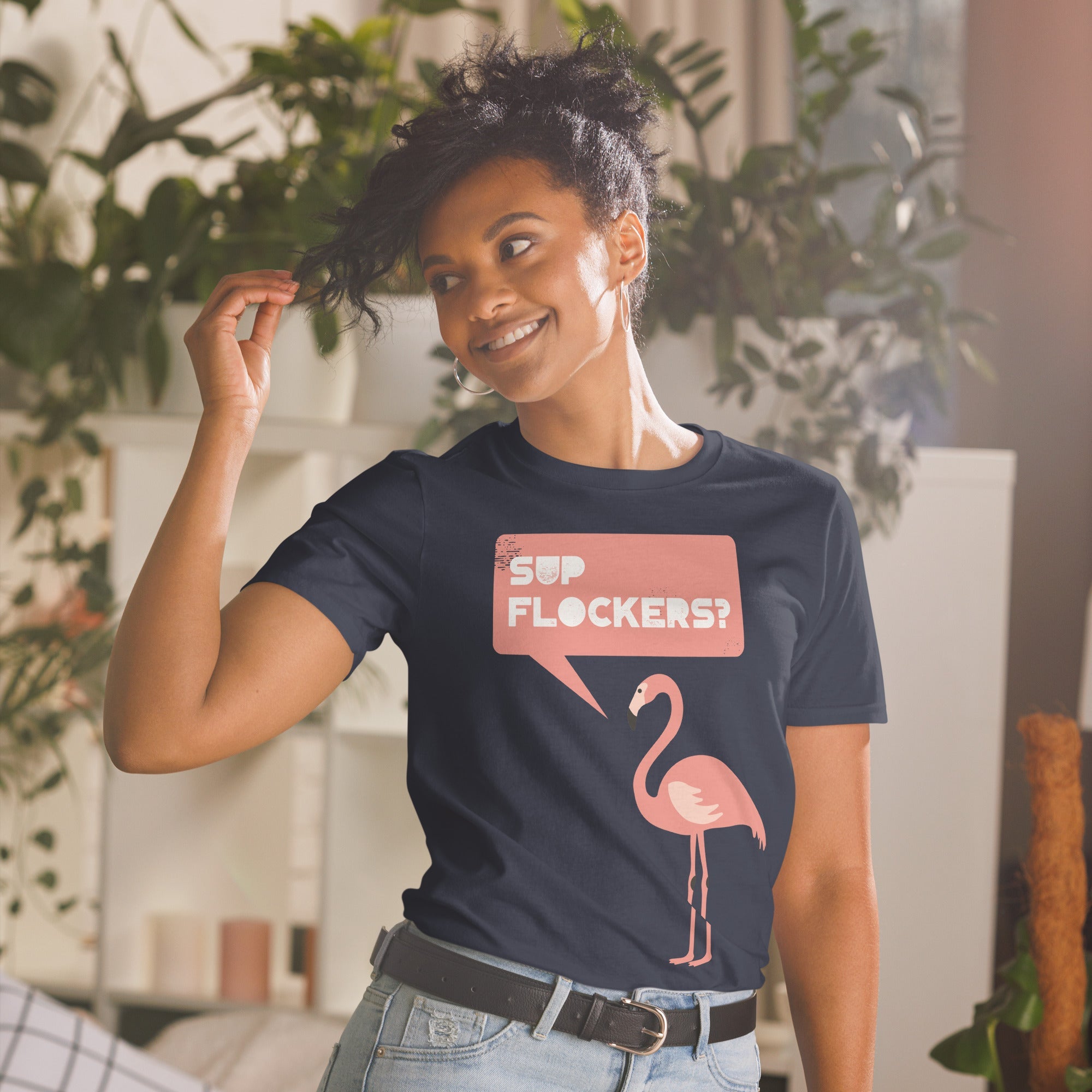 Let your flamingo spirit fly free! Any lover of the fabulous fowl is sure to enjoy this uniquely-designed flamingo t-shirt full of personality. With availability in a handful of colors, you can seamlessly combine the beautiful bird in with your outfits.