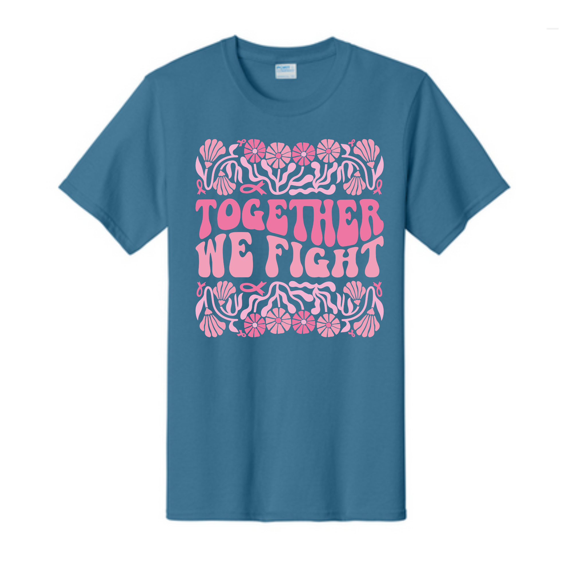 Together We Fight Breast Cancer Awareness Fundraiser Tshirt PC61 Port & Co™ Essential Tee PUBLIC ‐ 4XL / Colonial Blue