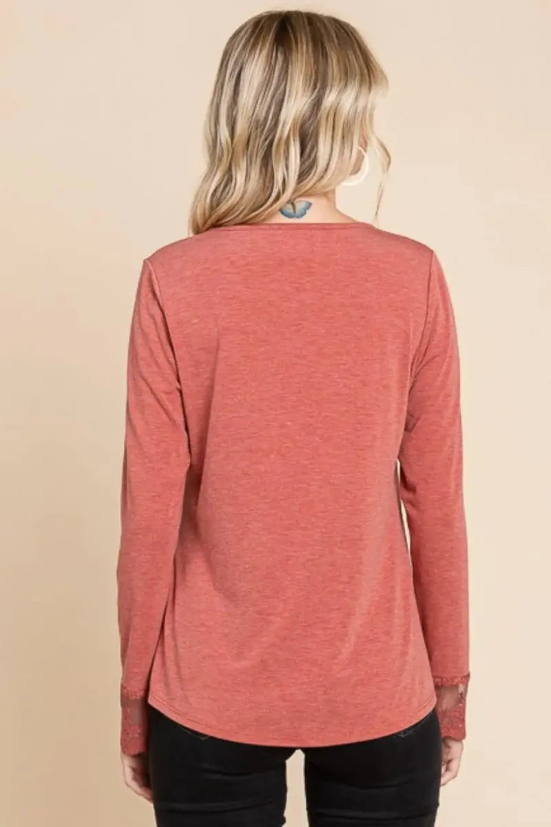 Lace Detail Tee Women's Everyday Top Soft & Breathable T-Shirt ‐ Rust / 1XL