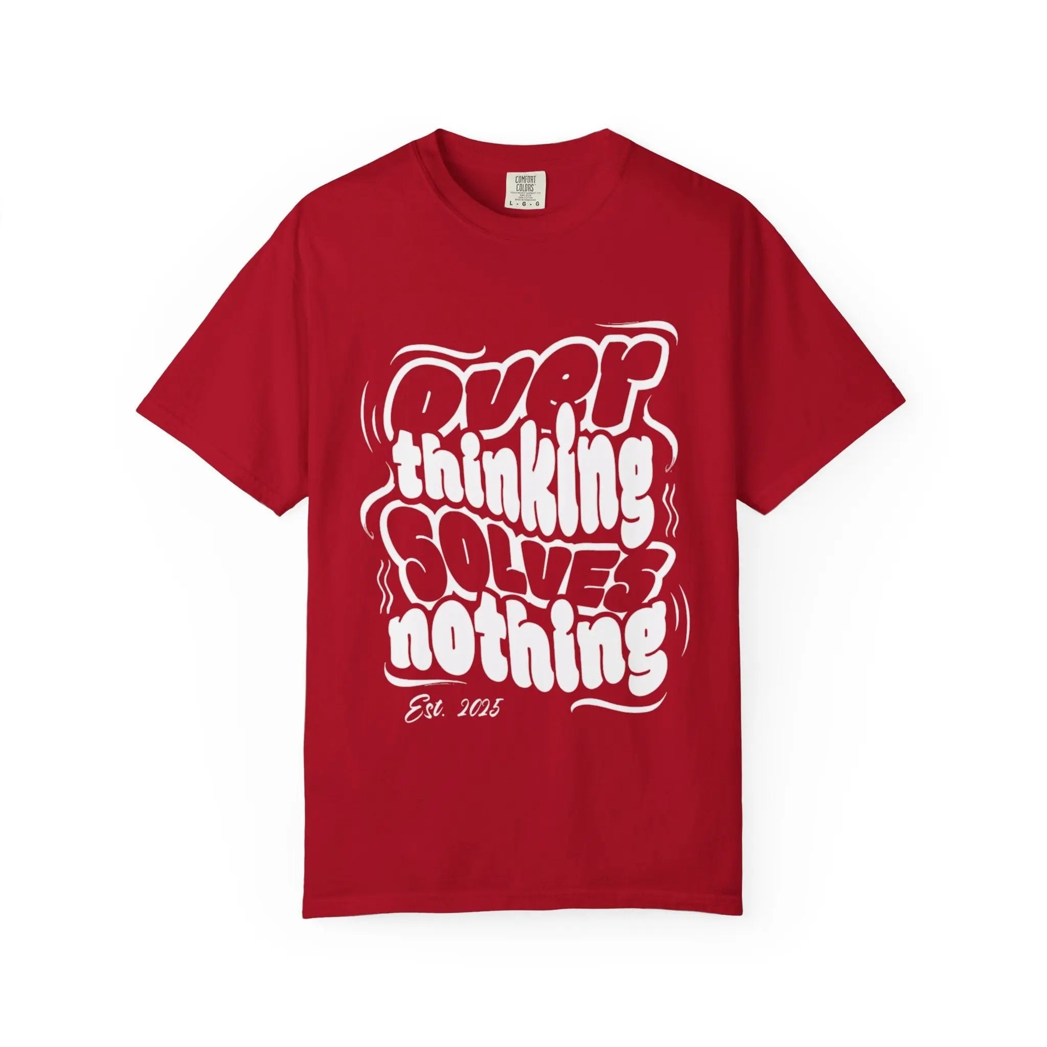 Unisex Overthinking T-Shirt - Relaxed Fit, Trendy Design, Perfect for Casual Outfits, Gift for Mental Health Awareness, Everyday Wear, [...] ‐ Crimson / L