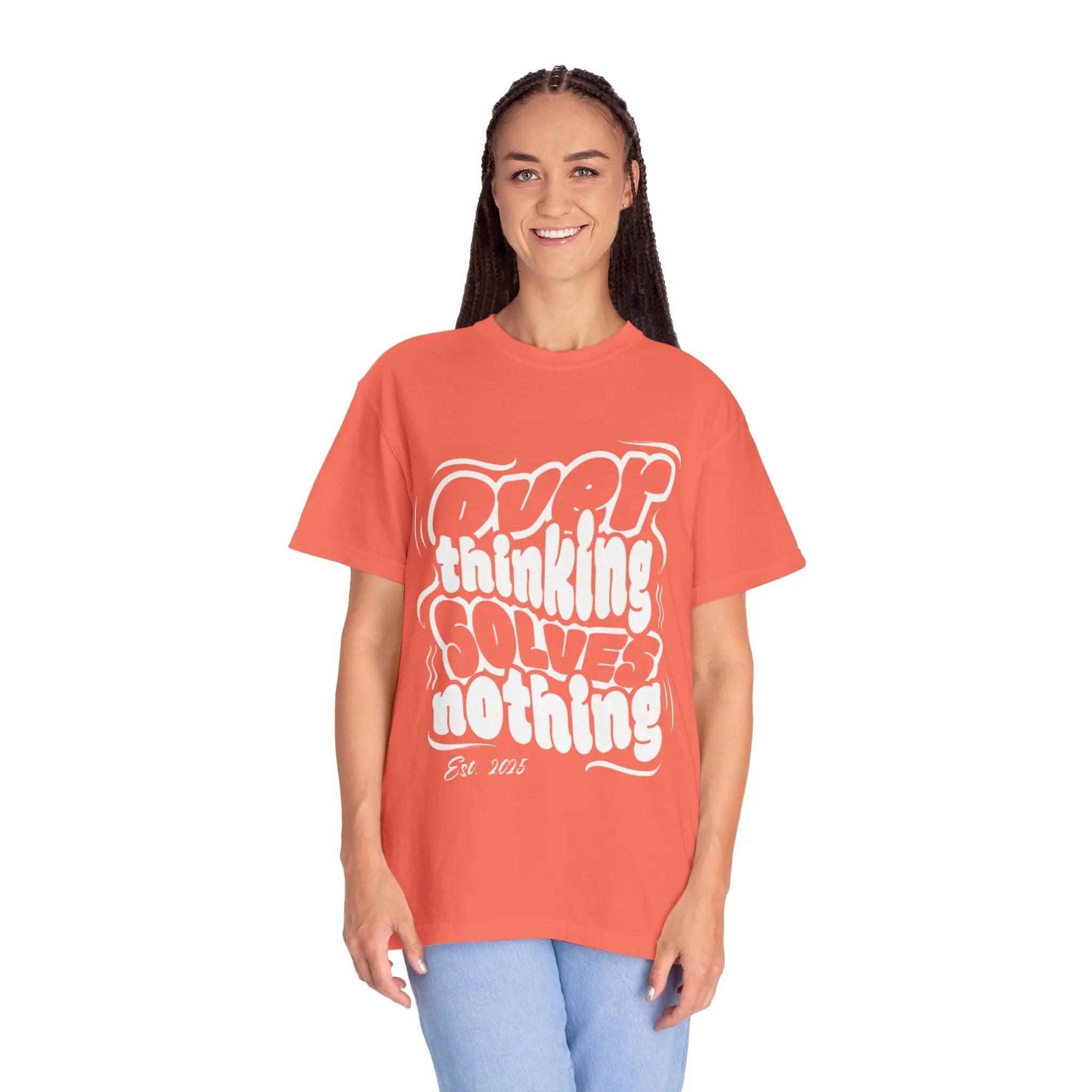 Unisex Overthinking T-Shirt - Relaxed Fit, Trendy Design, Perfect for Casual Outfits, Gift for Mental Health Awareness, Everyday Wear, [...] ‐ Bright Salmon / 4XL